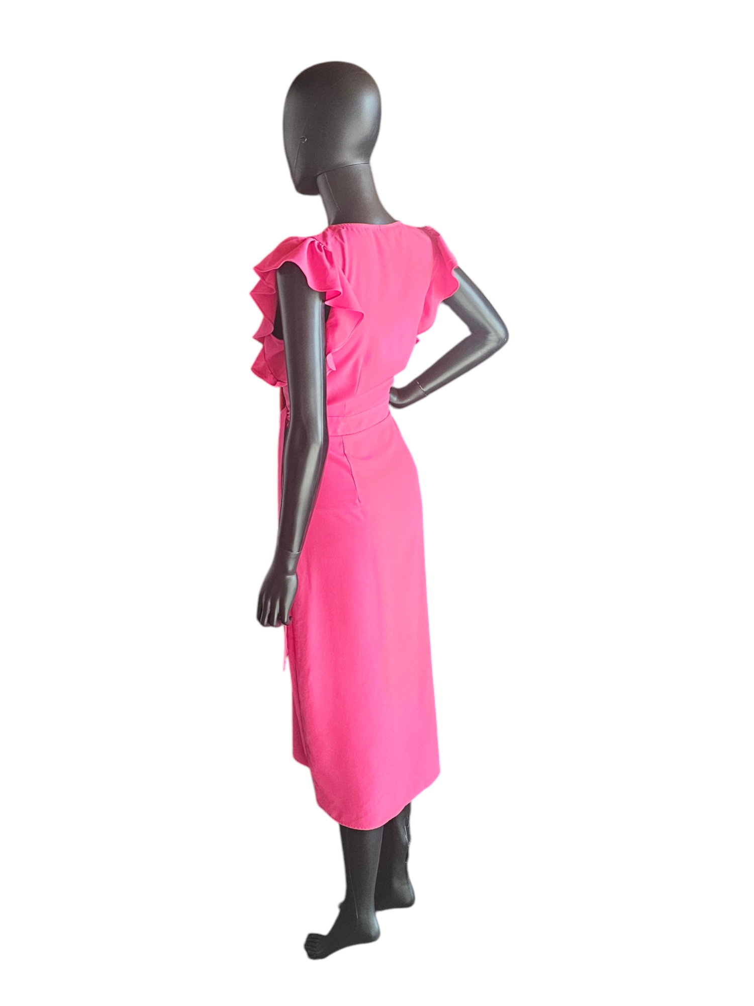 Hot Pink Flutter Sleeve Wrap Mid-Calf Dress - Who What Wear
