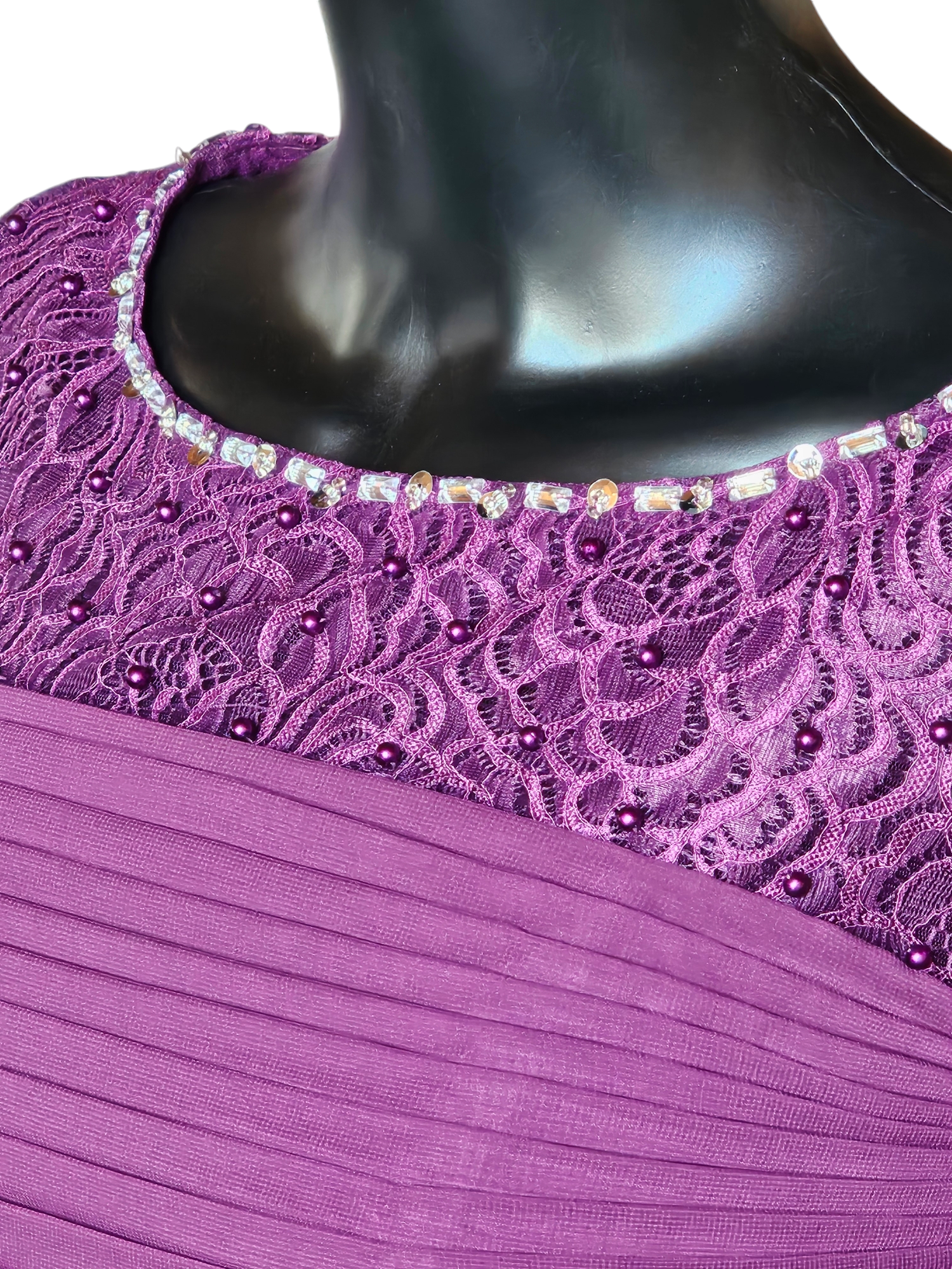 Plum Chiffon Ruched Lace Illusion Sleeve Formal Dress - Lightbox - NWT