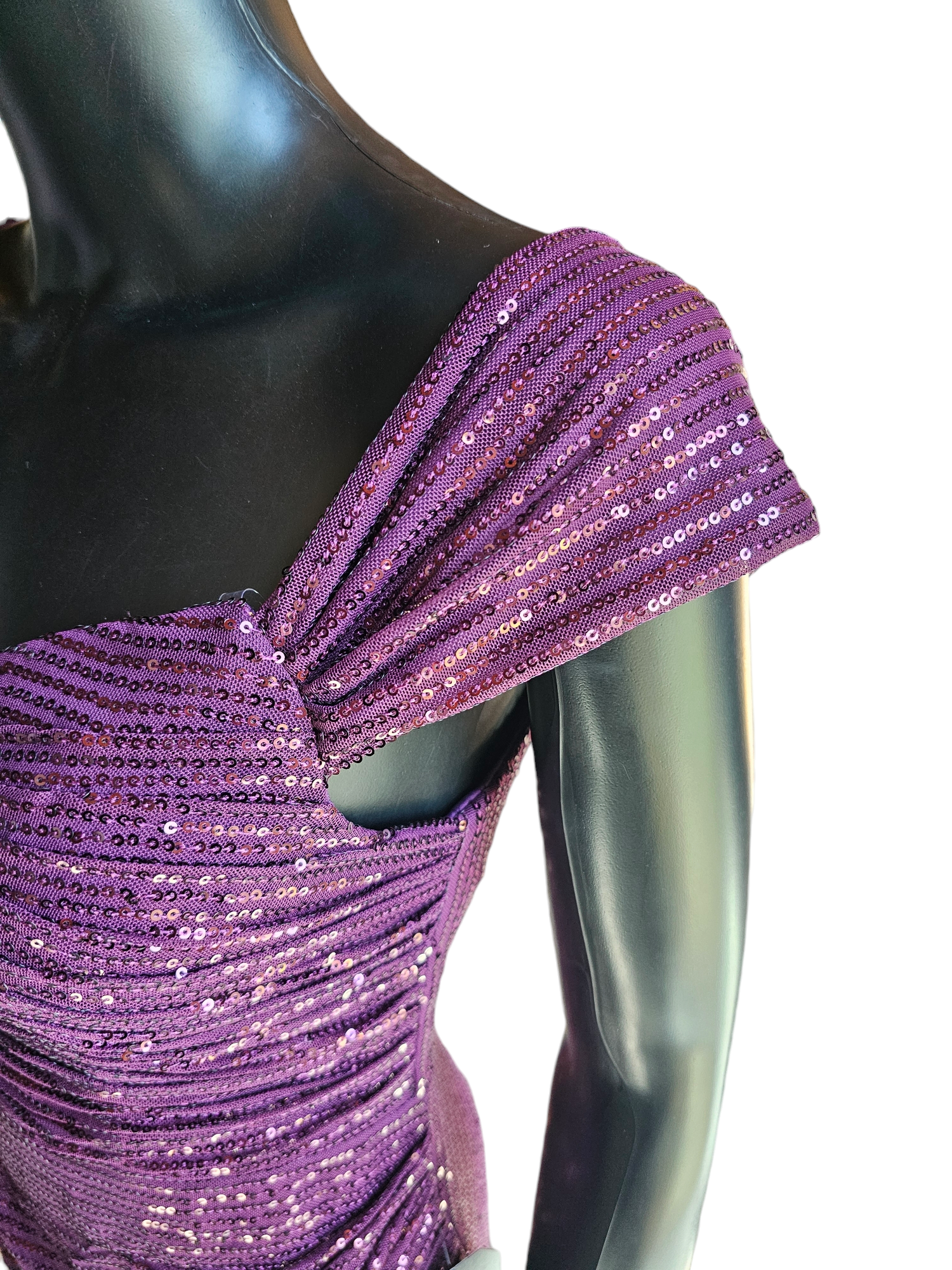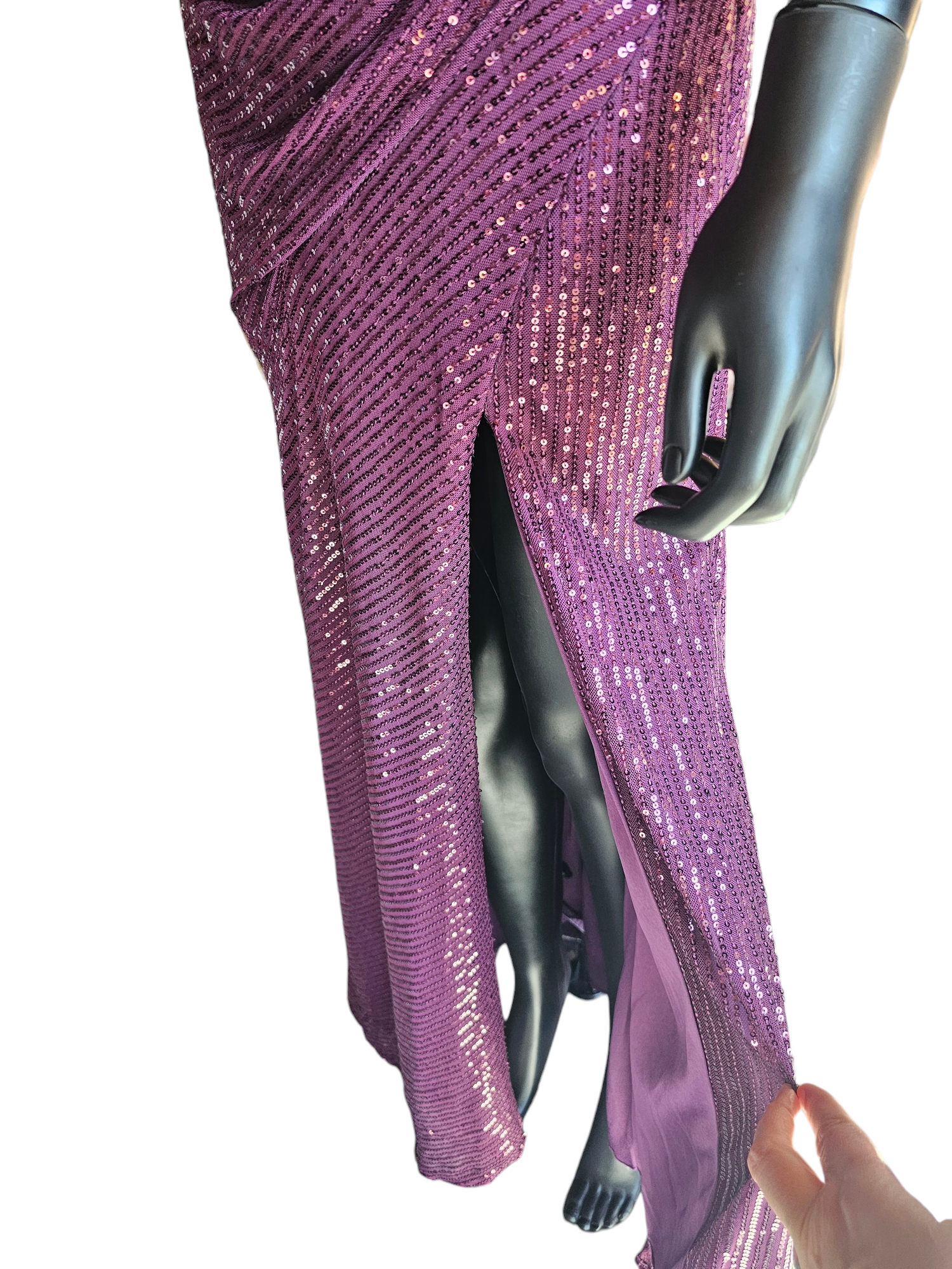 Expertly designed for a glamorous evening, our Plum Full Sequin Formal dress features asymmetrical ruching, a sweetheart neckline, and a sweep train. Small cap shoulders add a touch of elegance while rows of glittering sequins in a rich plum purple color make you the center of attention.