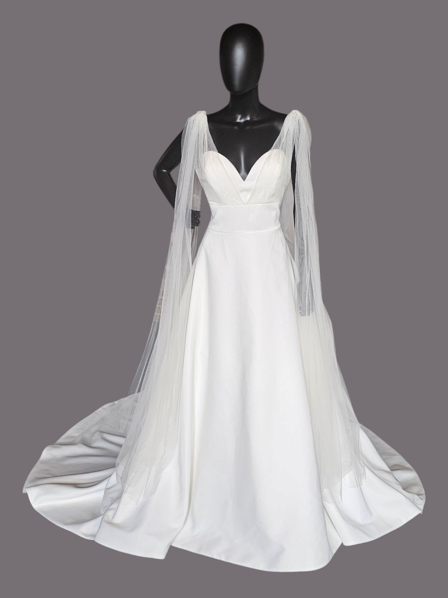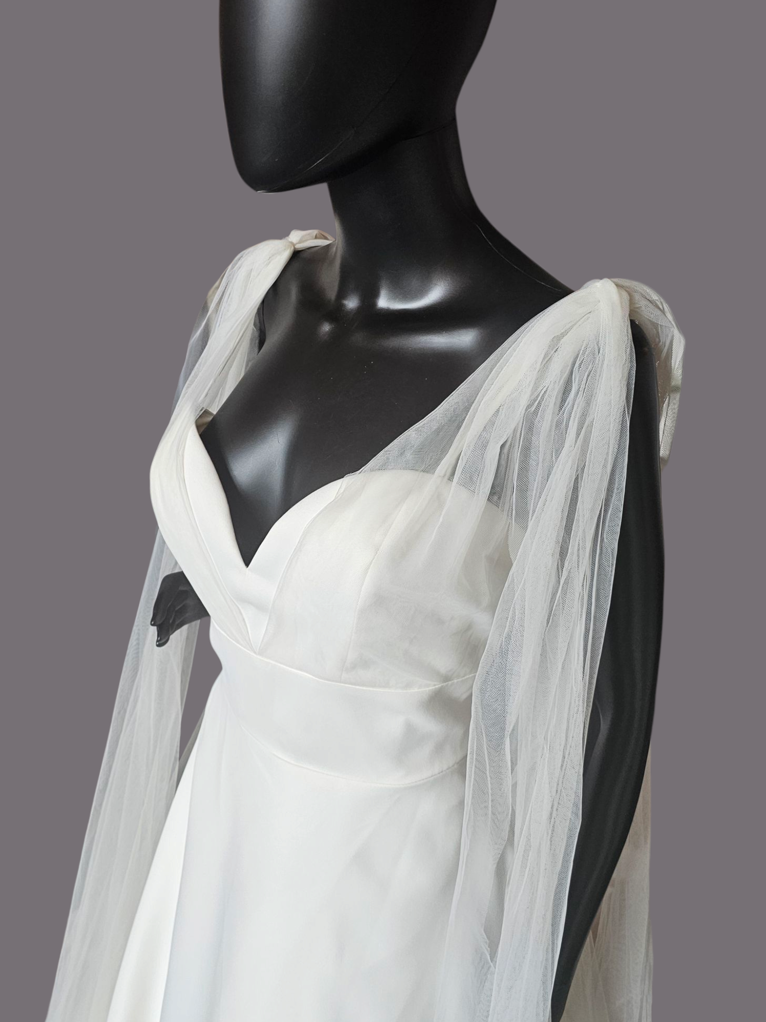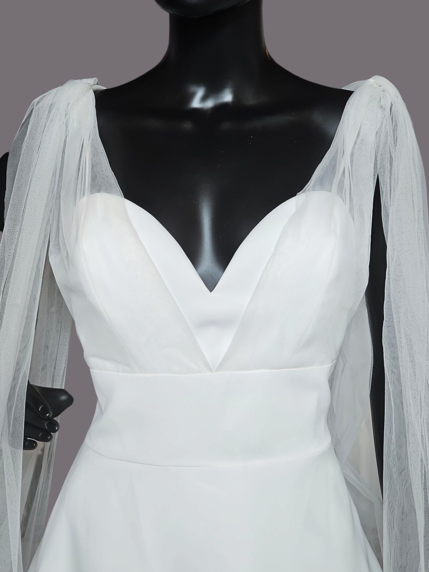 Plunge V-Neck Tulle Arm Detail Wedding Gown - Amy & Eve