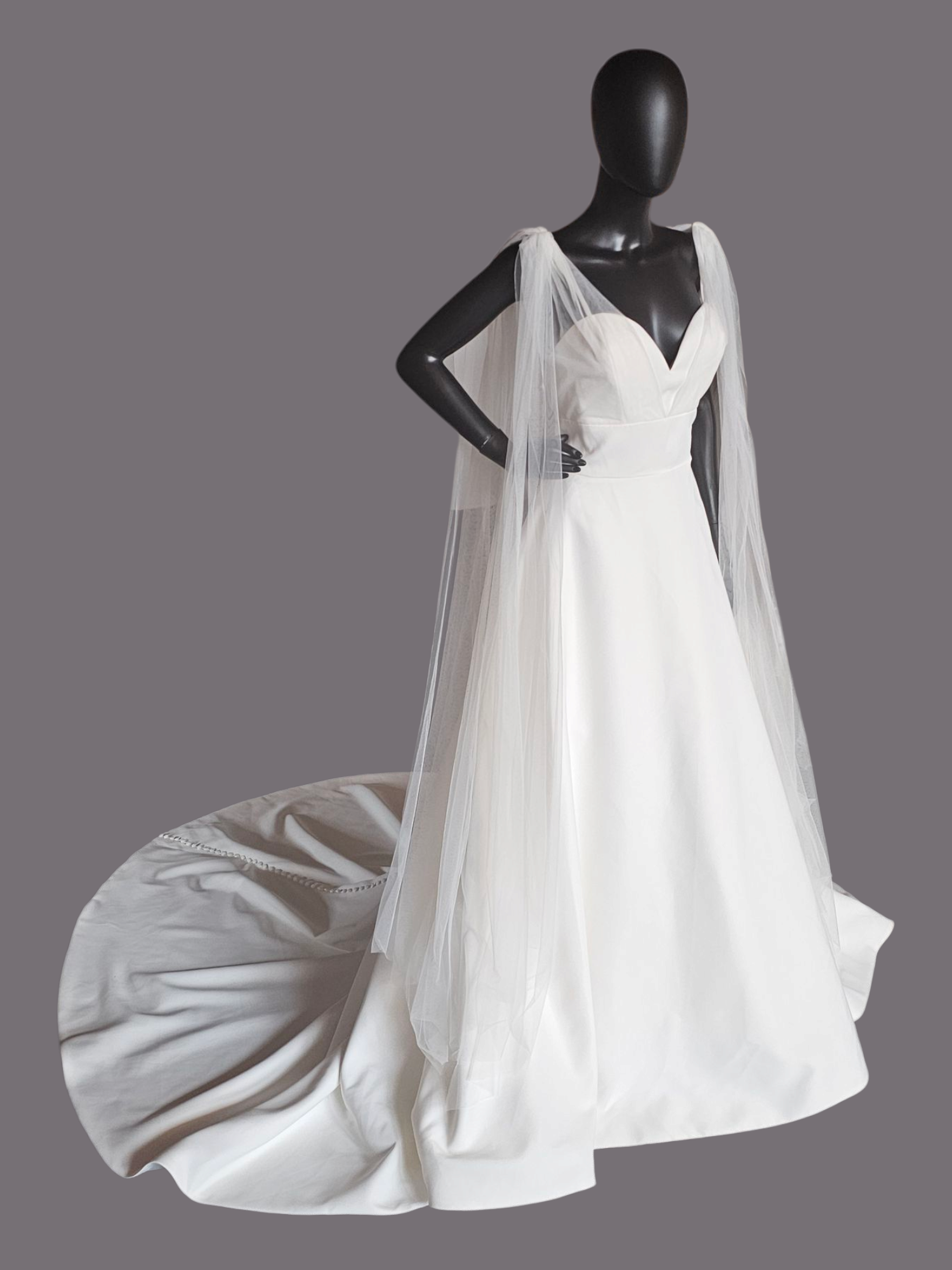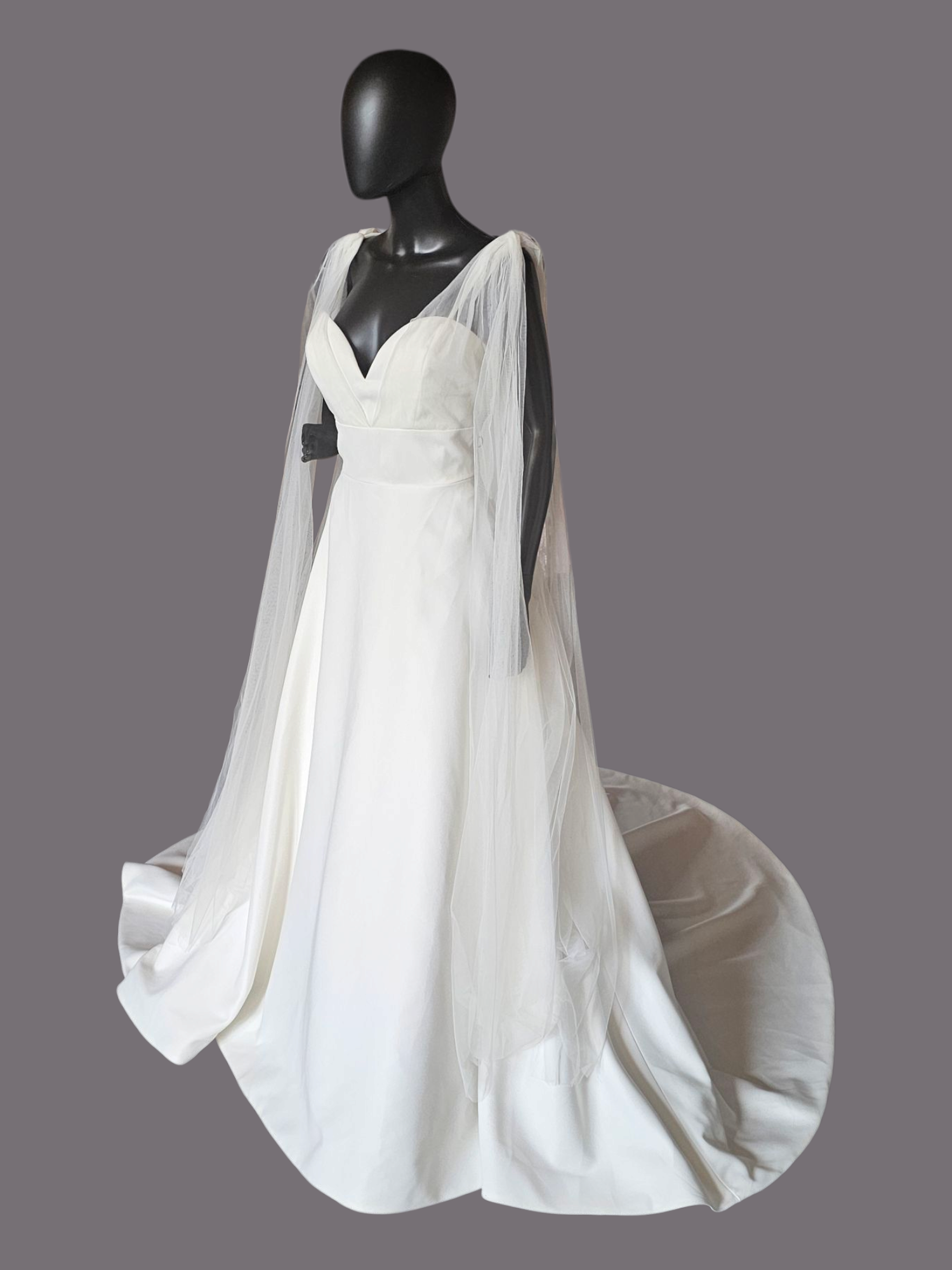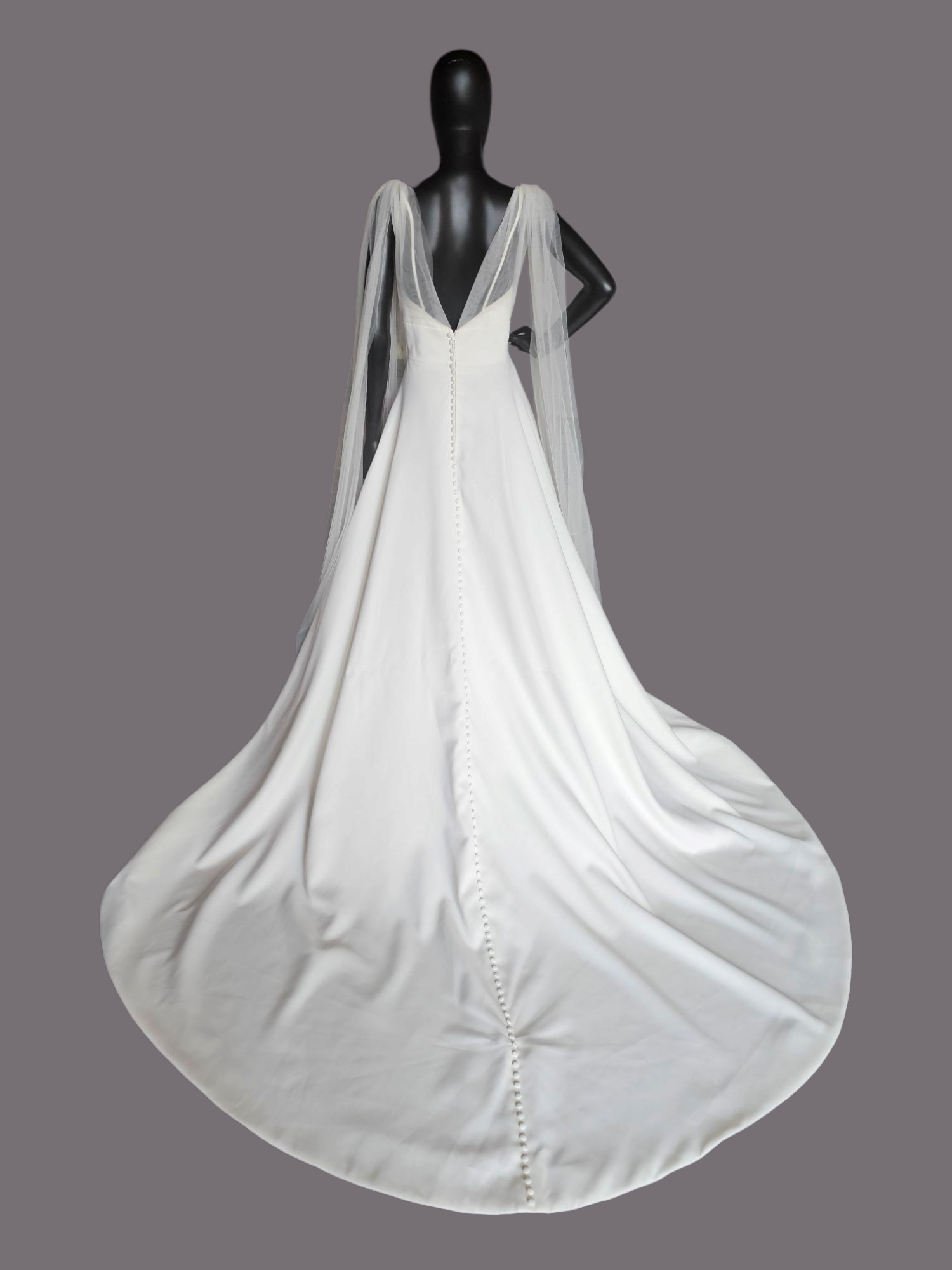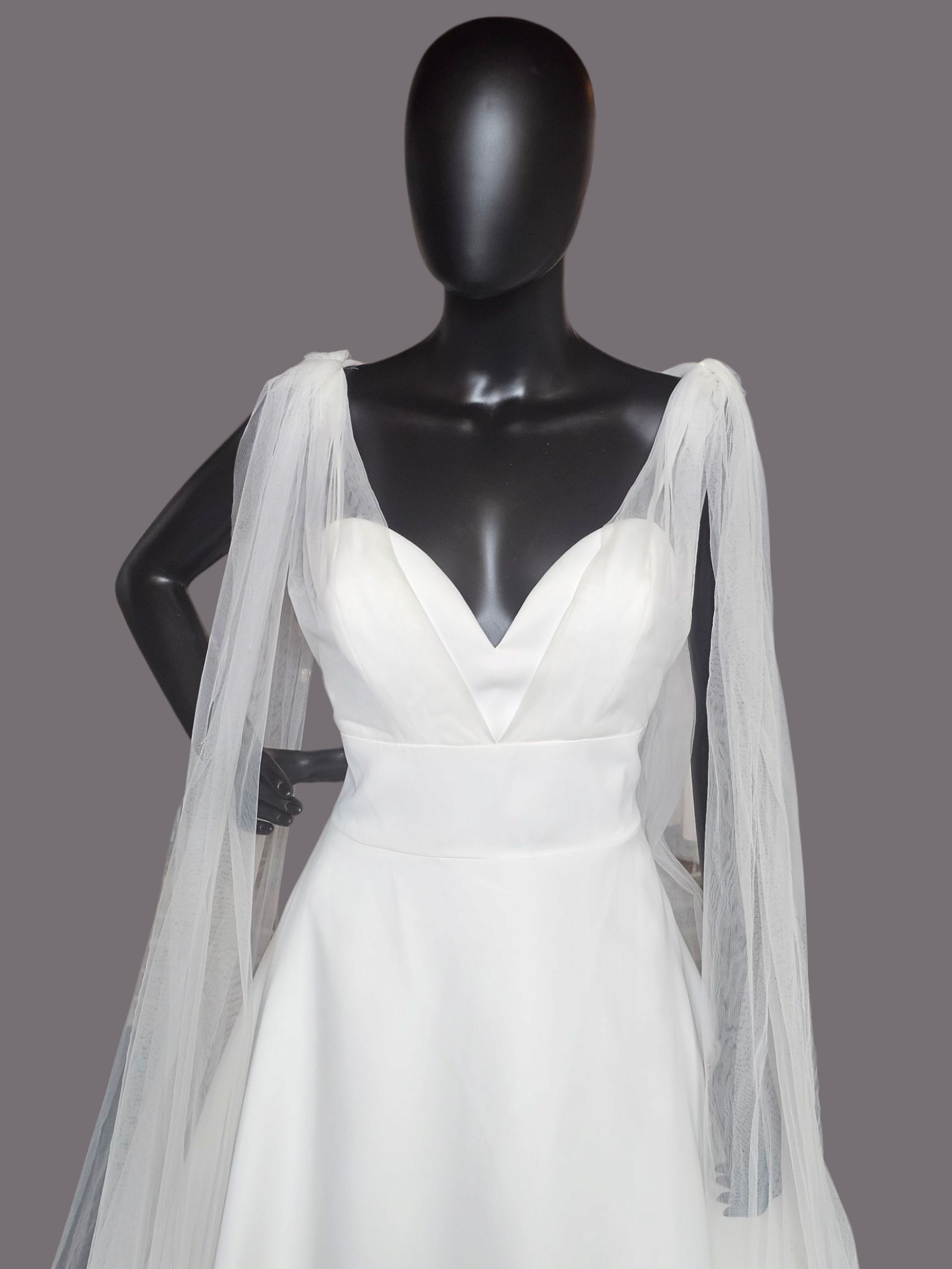 Plunge V-Neck Tulle Arm Detail Wedding Gown - Amy & Eve