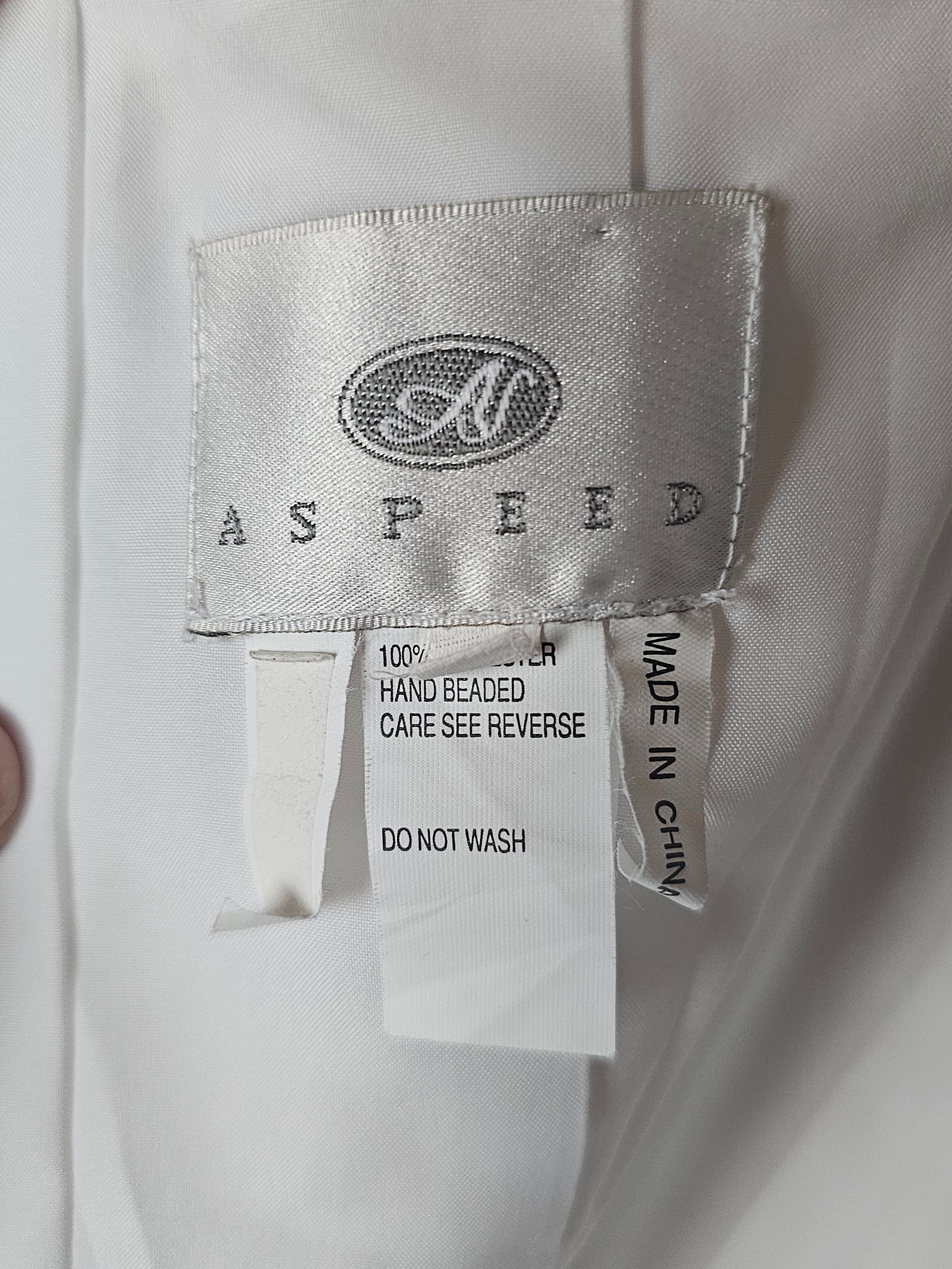 This gown is part of our pre-loved collection and it has been worn before. It has been minimally altered and has very little signs of wear.