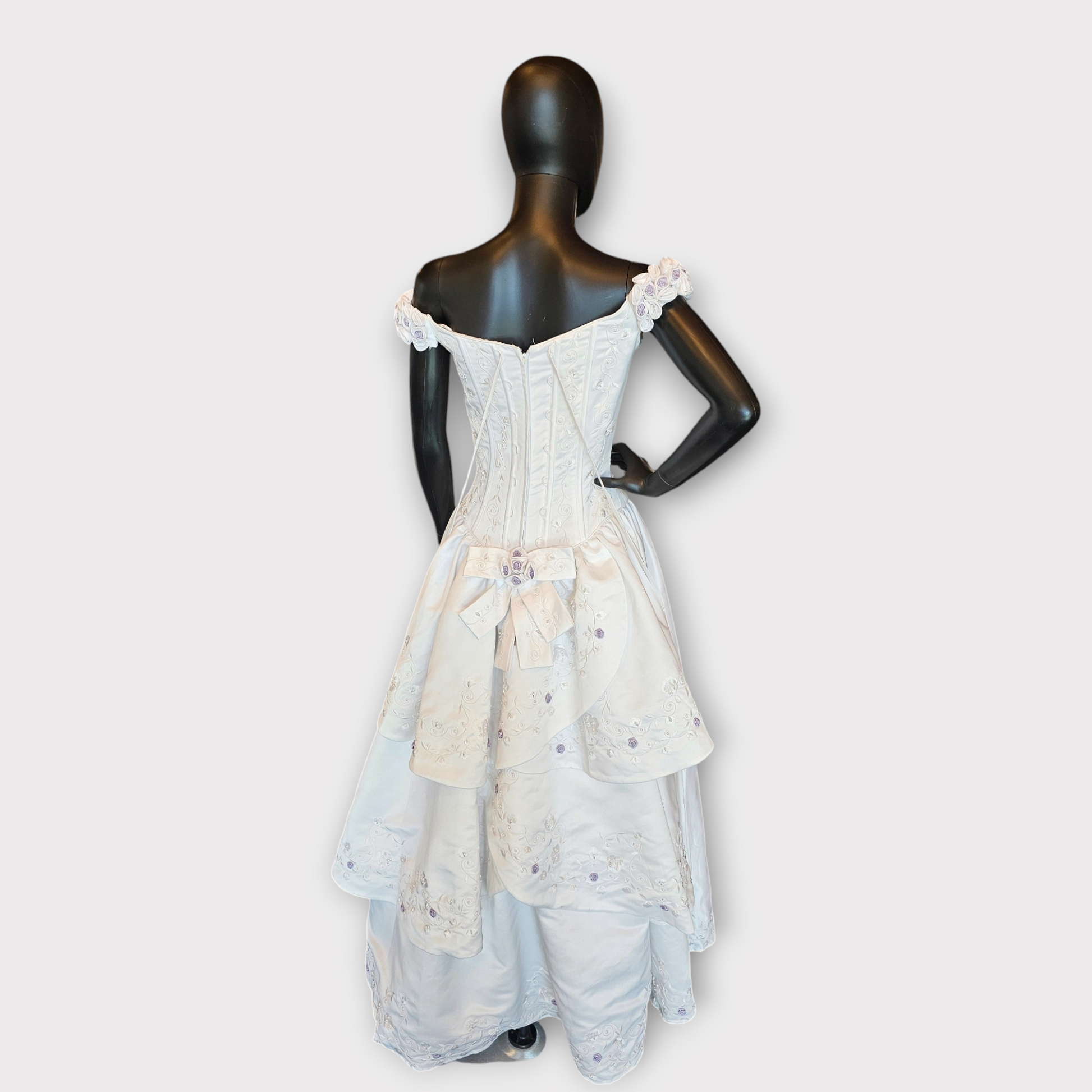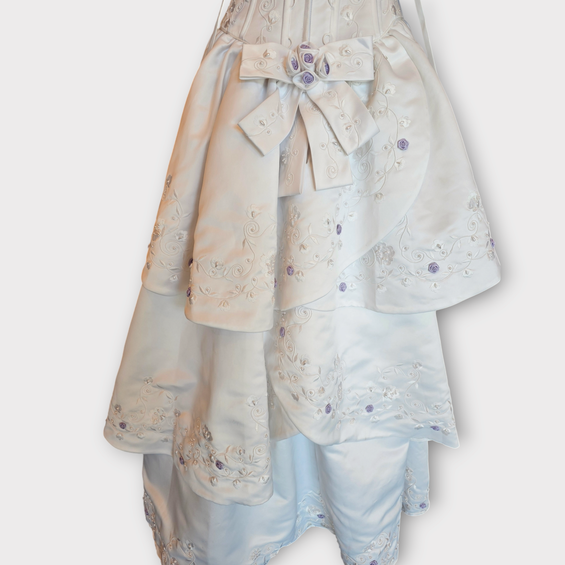White Satin/Lavender Rose Detail Antebellum Wedding Gown