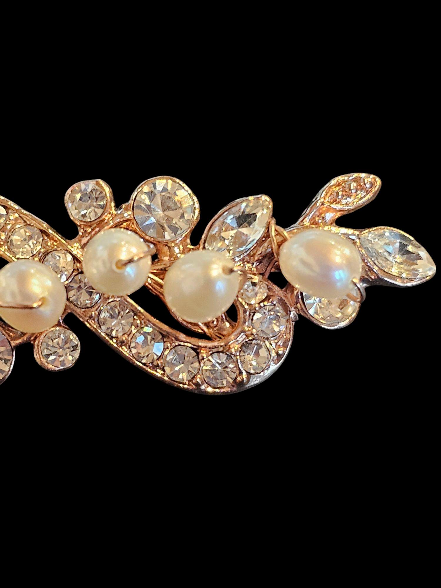 Rose Gold Rhinestone/Freshwater Pearl Hair Pin