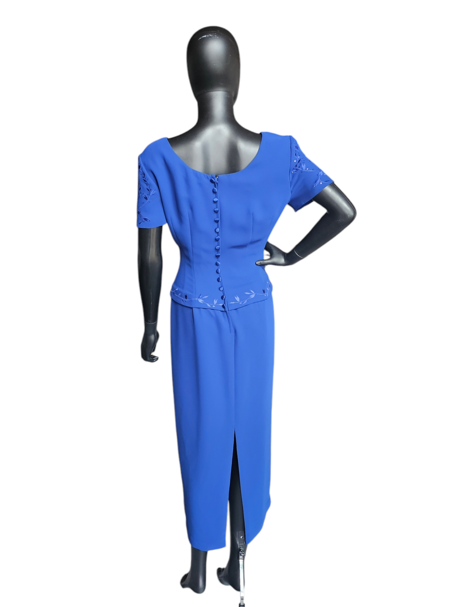 Royal Blue Embroidered Cap Sleeve Sheath - Donna Morgan