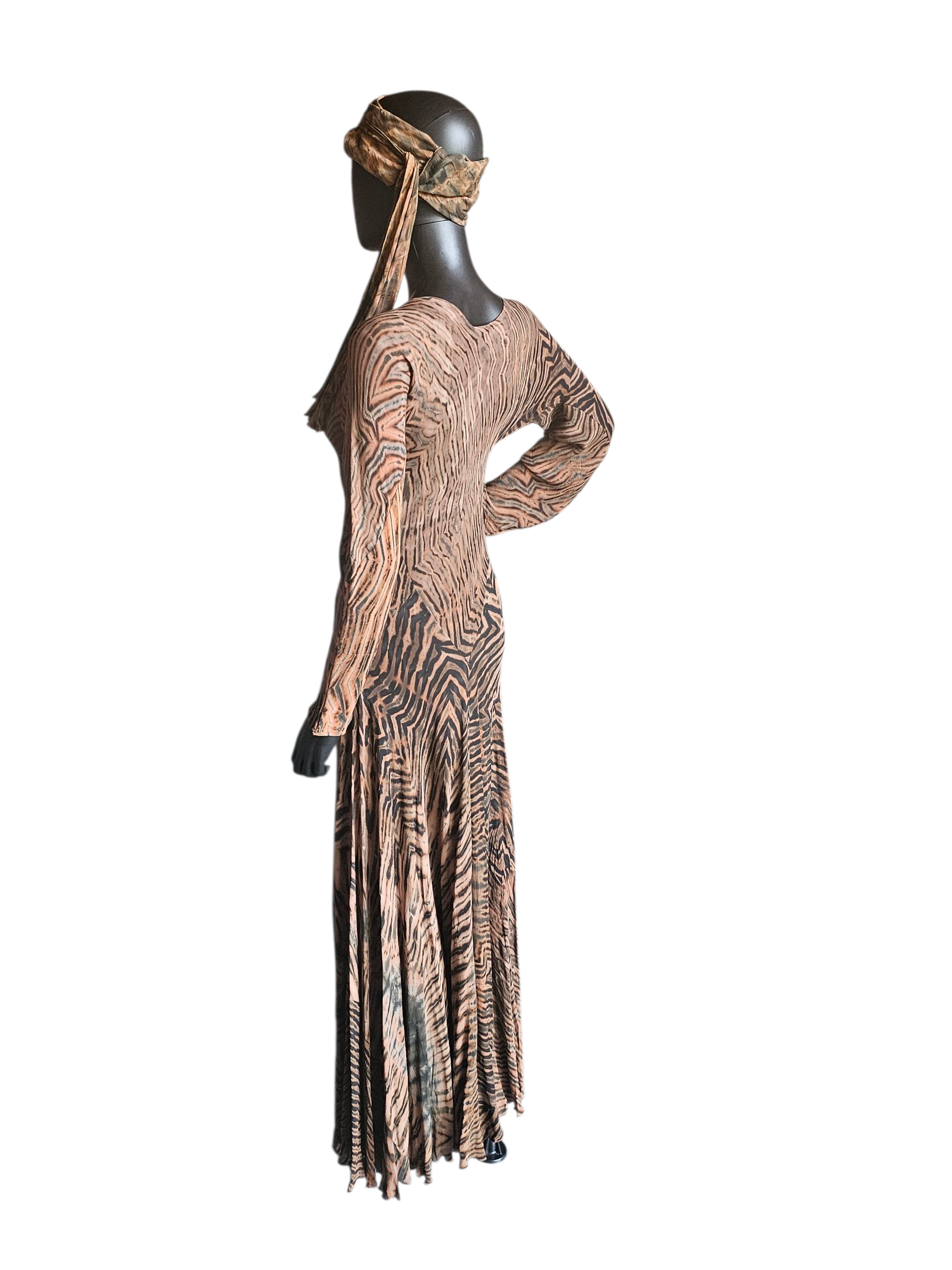 Brown/Black Shibori Silk Hand Dyed Bias Cut Maxi Swing Dress - Carter + Teri