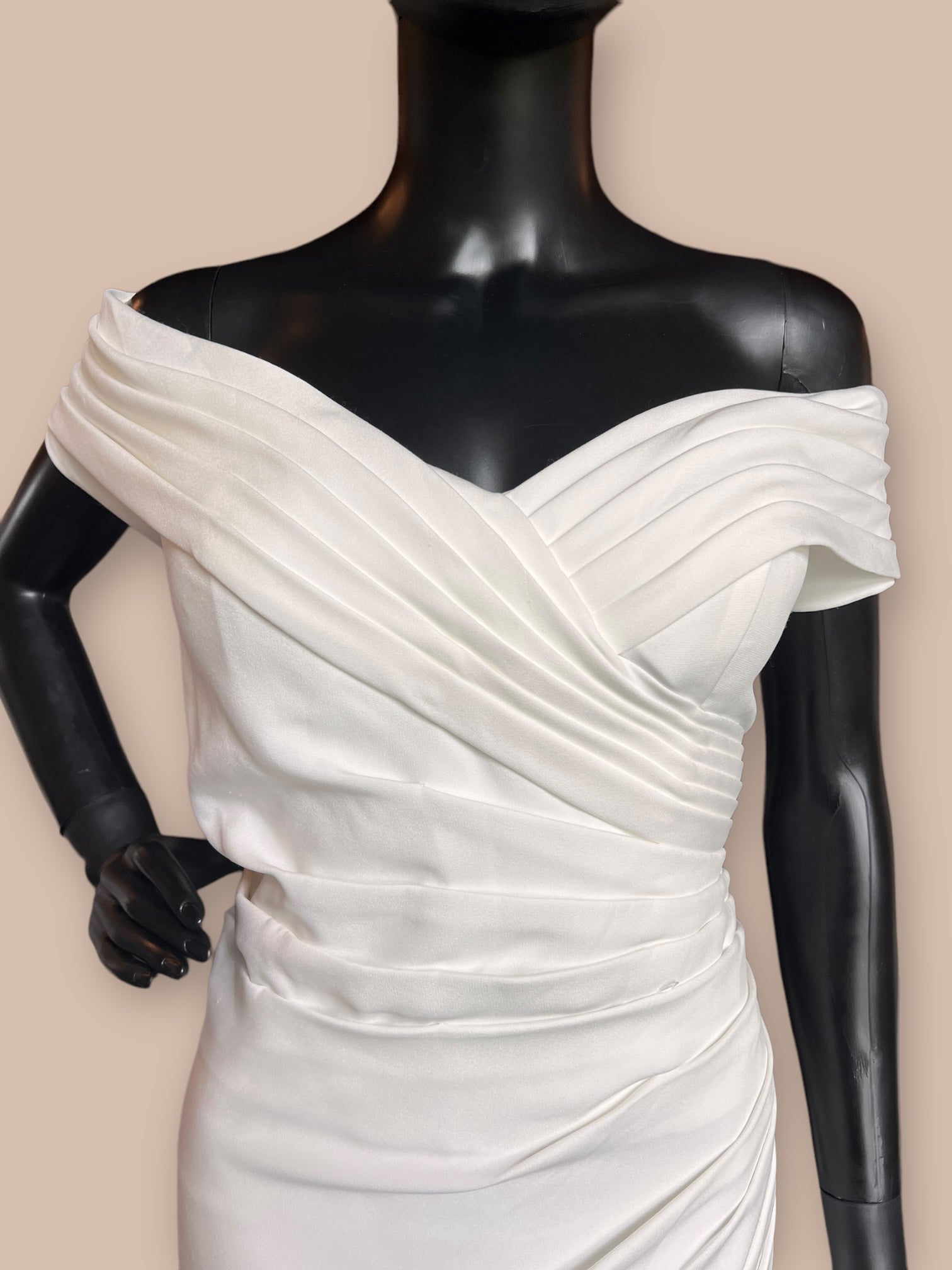 Simple and classic this off should stretch jersey gown is flattering on all body type. Feel like an old Hollywood starlet!