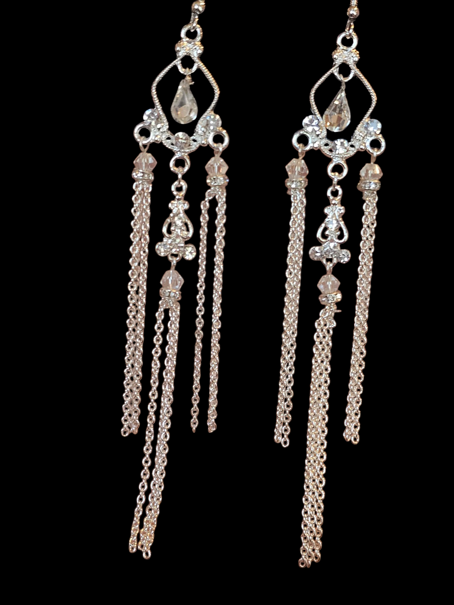 Silver Chain/Crystal Long Dangle Earring - Marionat