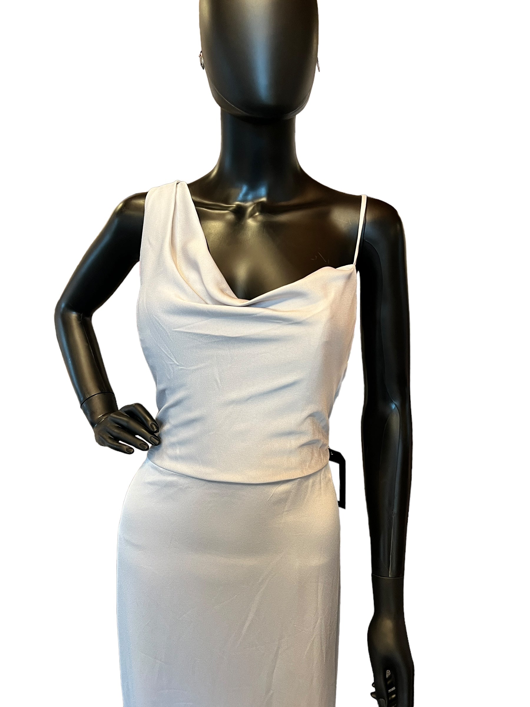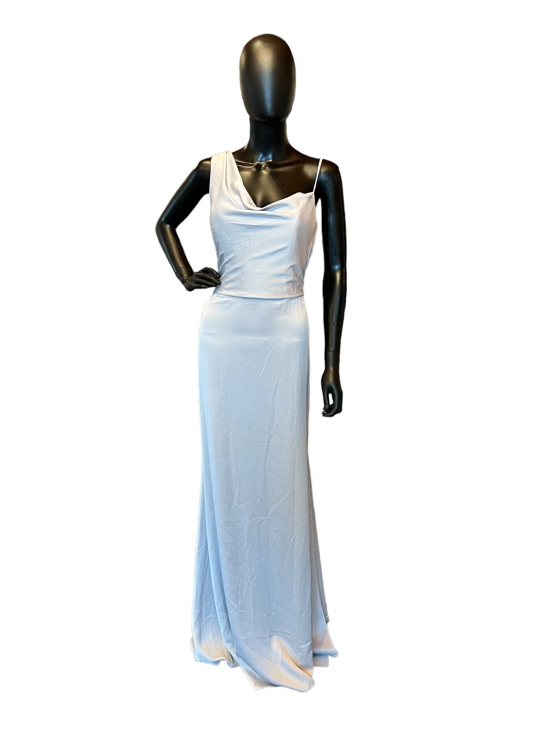 Special Attributes: Ruffled neckline, one spaghetti strap and one wide strap