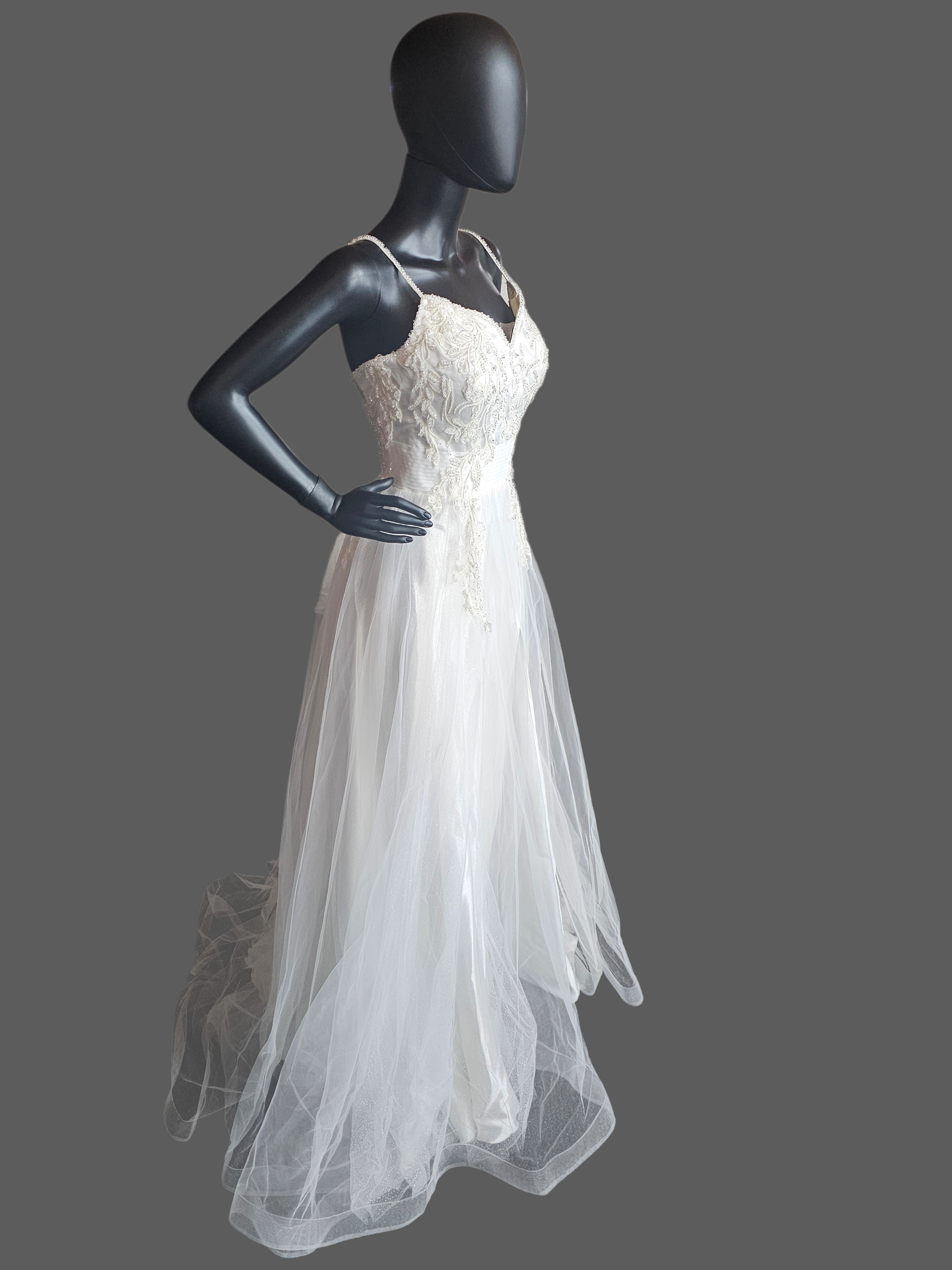 Spaghetti Strap Ivory Floral Embroidered Side Slit - Di La Sena