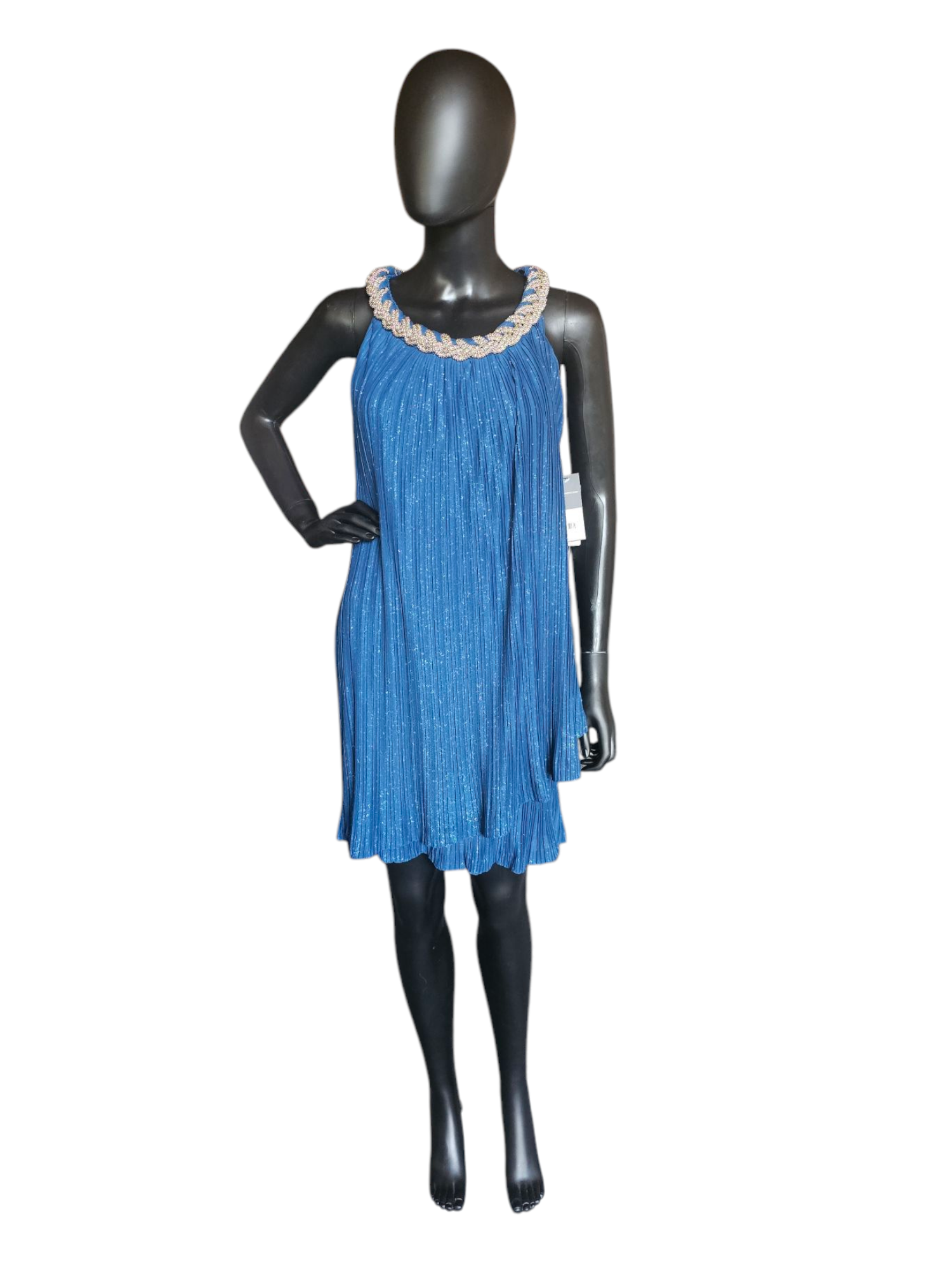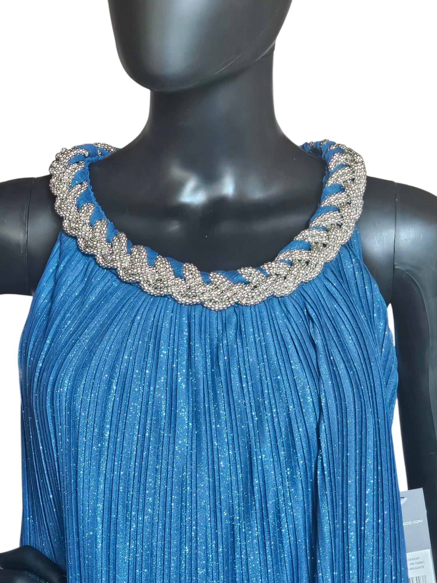 Sparkle Teal Chain Neck Cocktail - Donna Ricco - PETITE