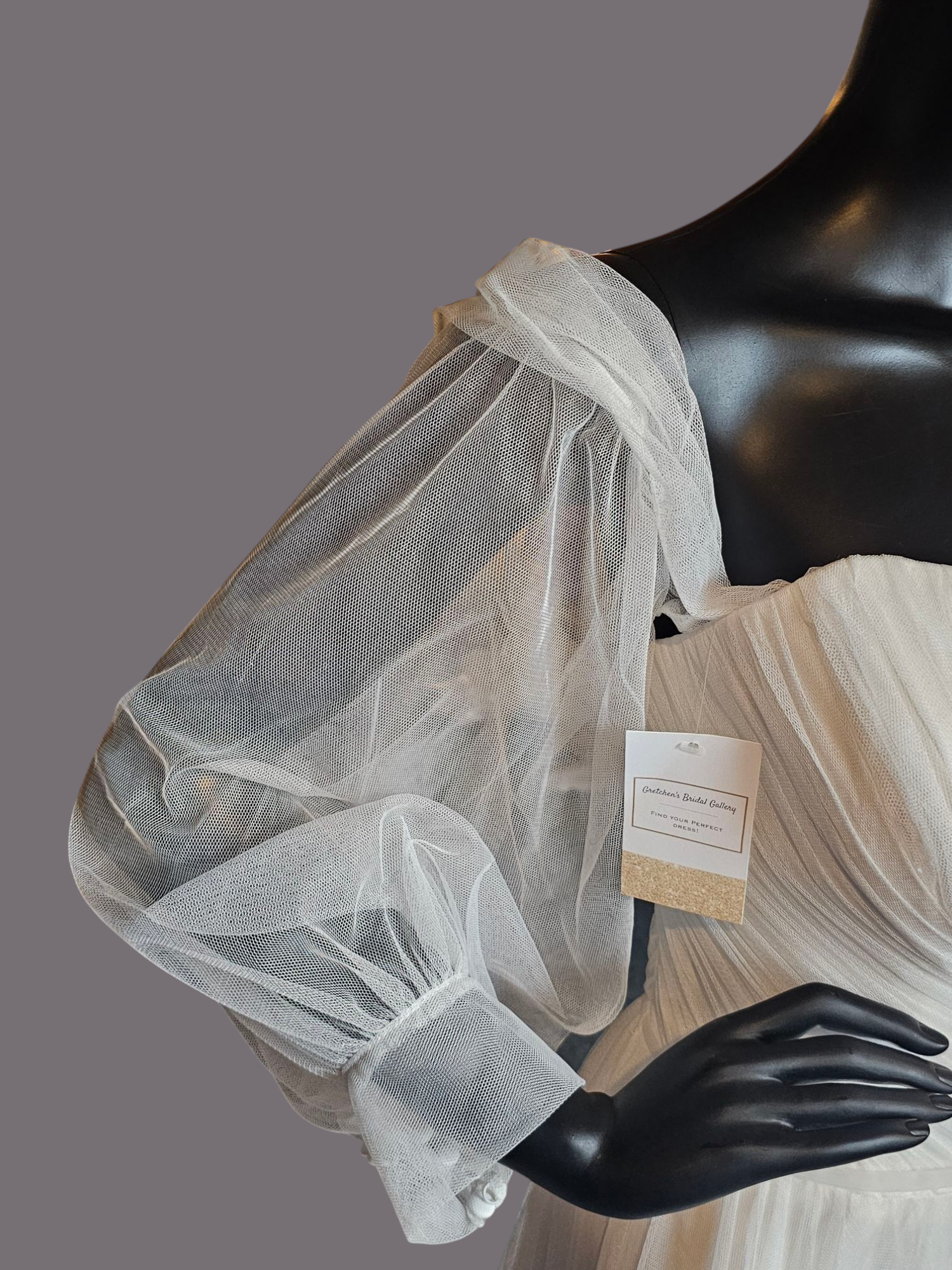 Sweetheart Plunge Detached Sleeve Ivory Netting Wedding Gown