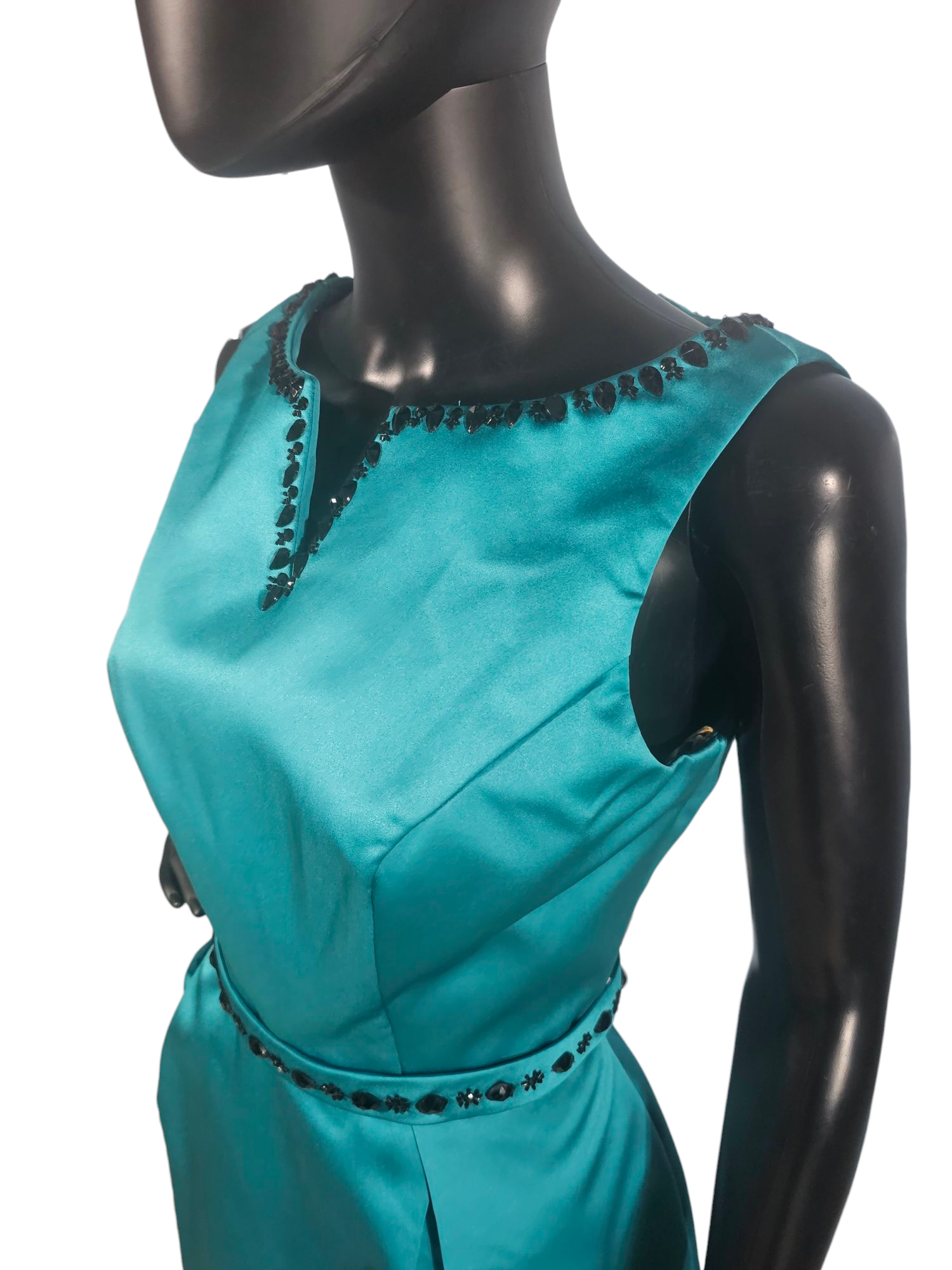 Teal Satin/Black Crystal A-Line Cocktail Dress - Da Vinci