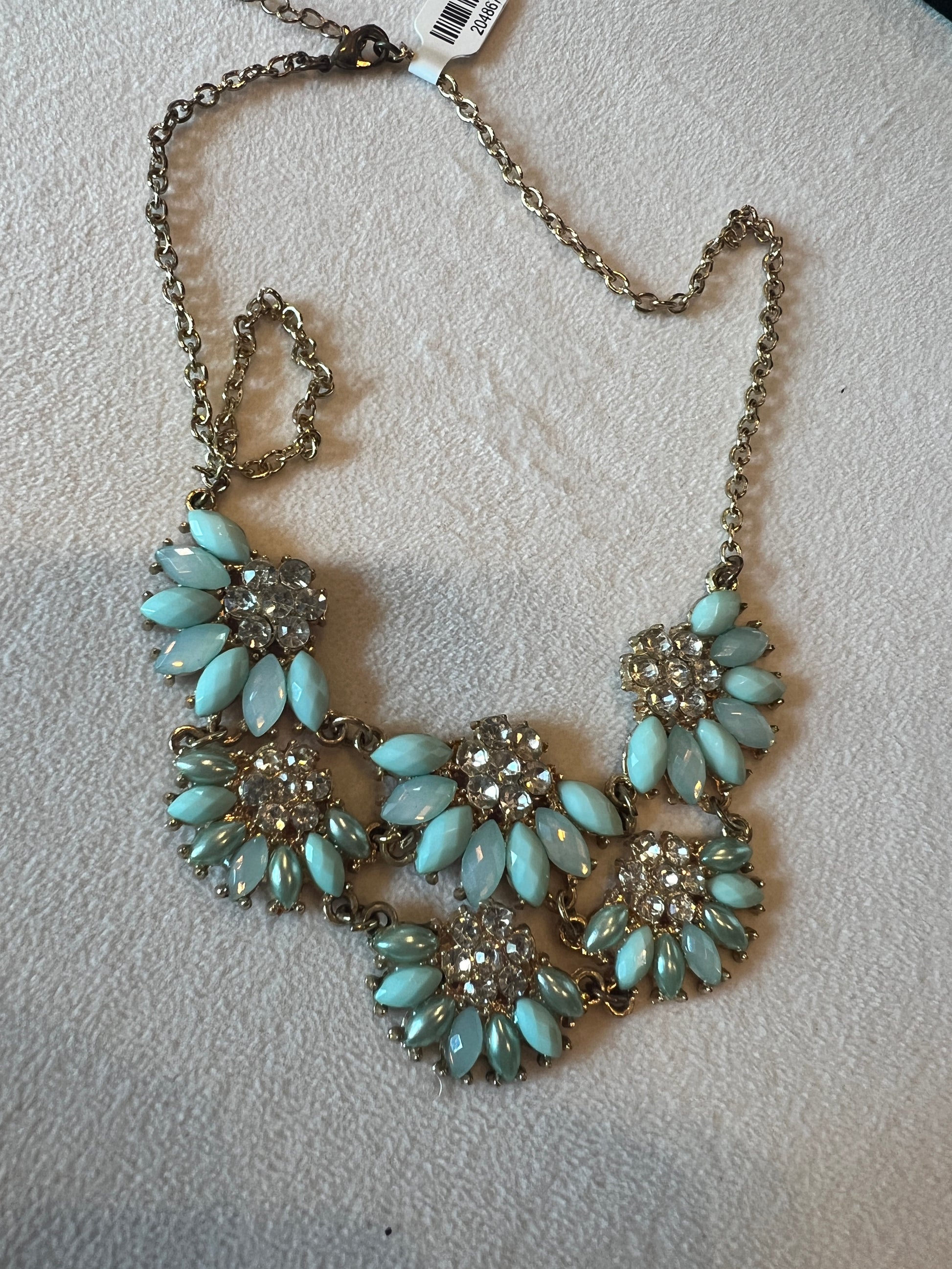 Turquois/Gold/Crystal Flower Bib Necklace