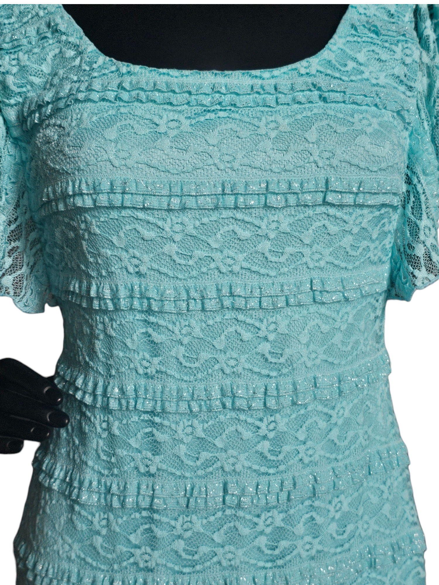 Turquois Lace Flutter Sleeve Dress - Guess Los Angeles