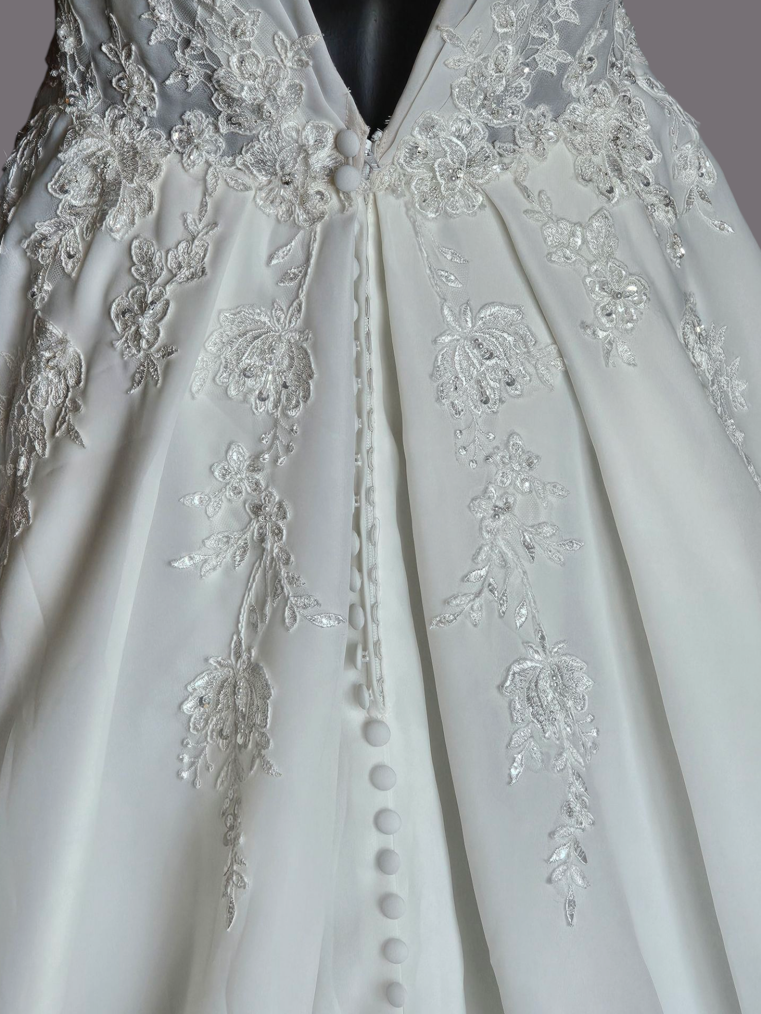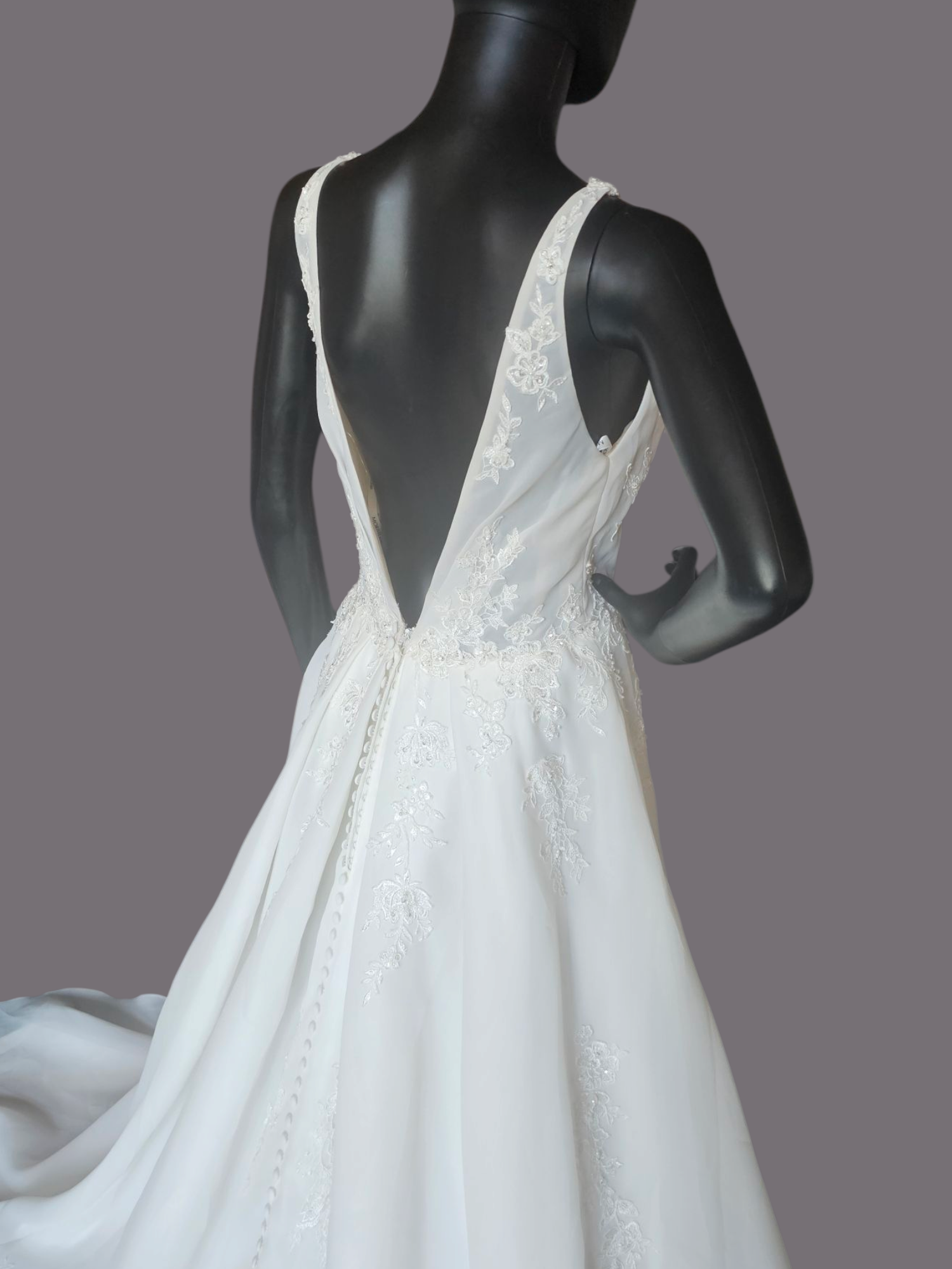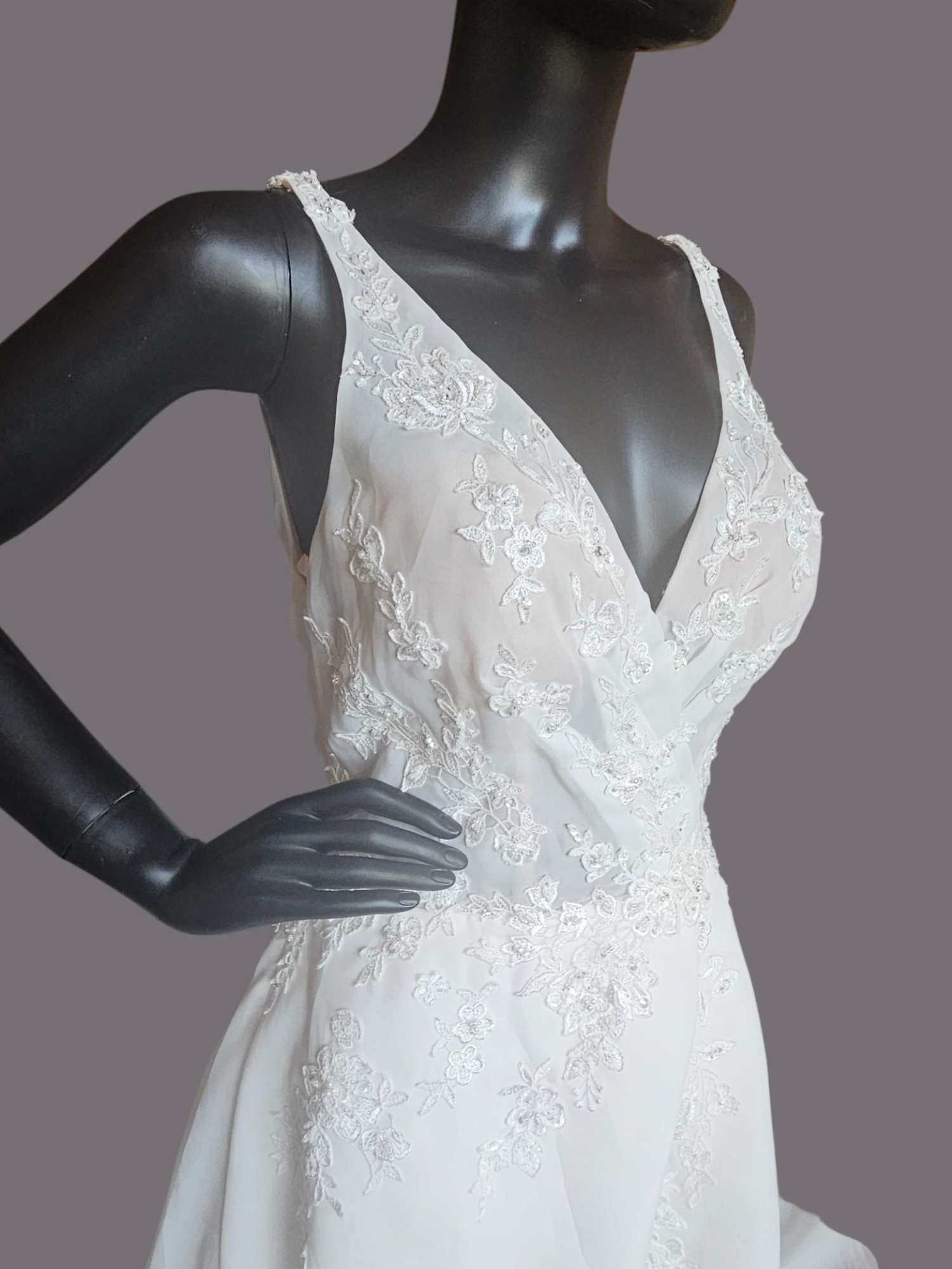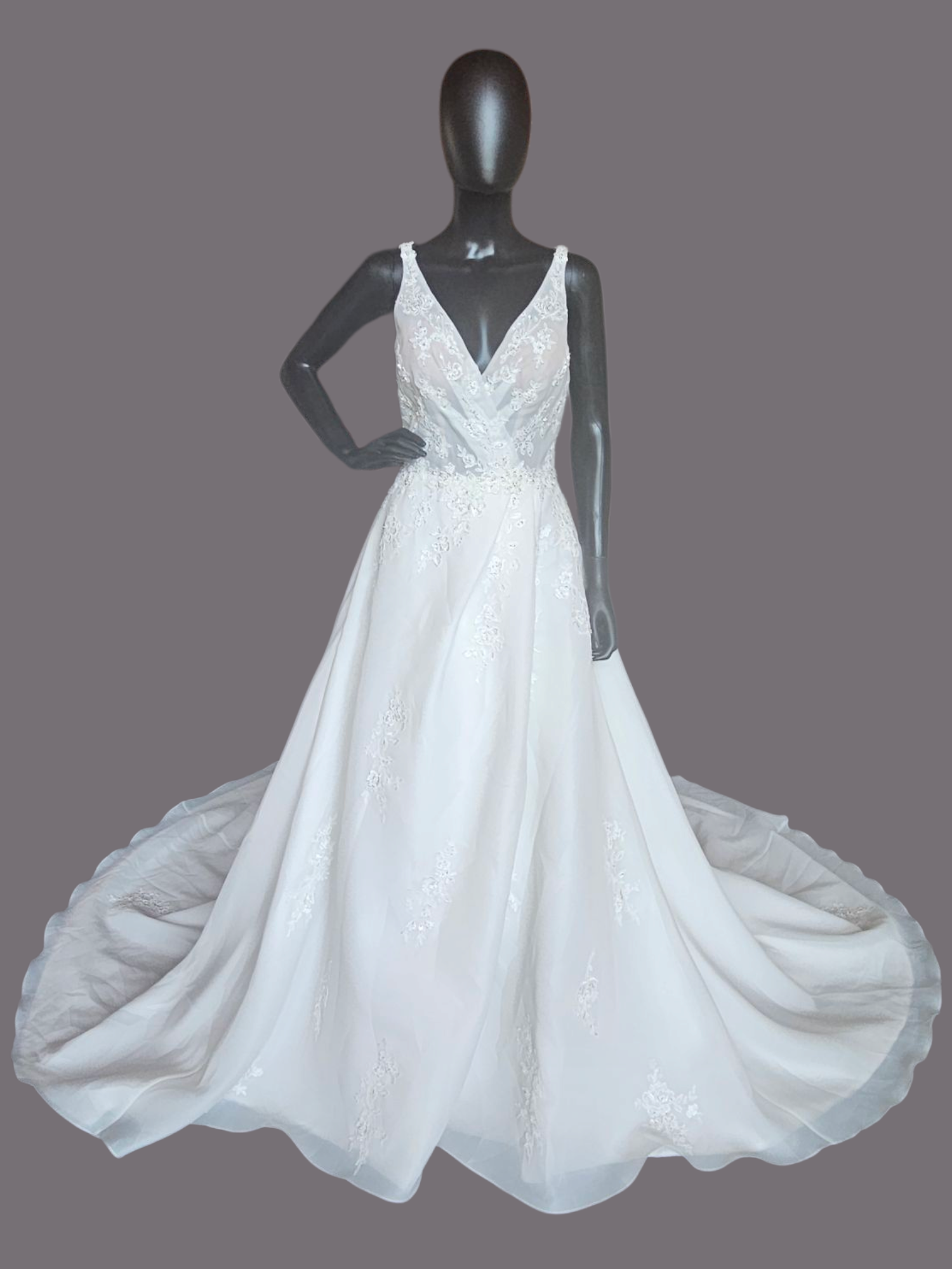 This gown is part of our store sample collection. It has never been worn for a wedding or altered in any way. Many will still have the original store tags on them. They may show some slight signs of wear from being tried on in the store. All prices reflect the condition of the gown. Please contact me to schedule a virtual consultation where we can go through the gown together and verify the condition so you feel confident in your purchase.