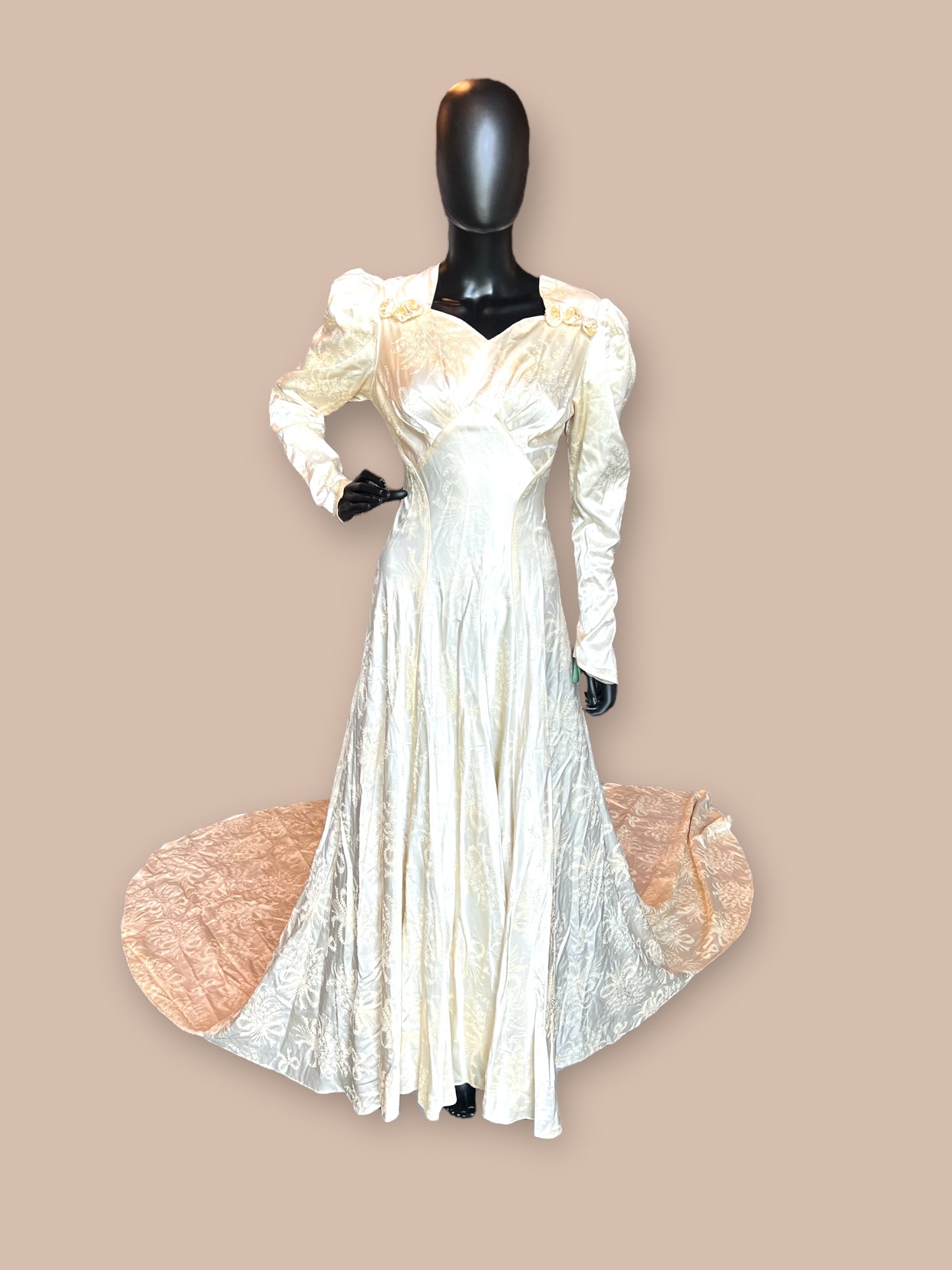 Vintage Ivory 40's Liquid Satin Sweetheart Neckline Wedding Gown