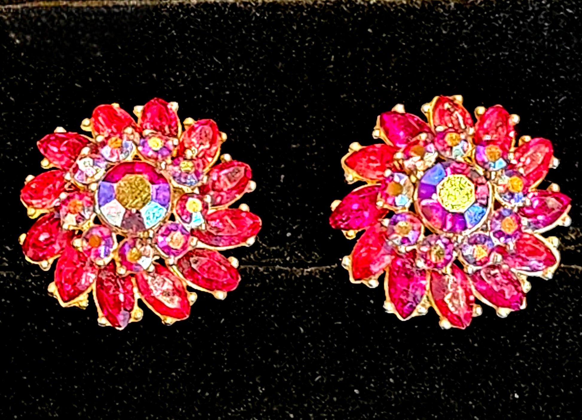 This is a collection of vintage paste earrings that come in a variety of traditional styles and colors. The price listed is PER SET. Contact seller for information on a specific set.
