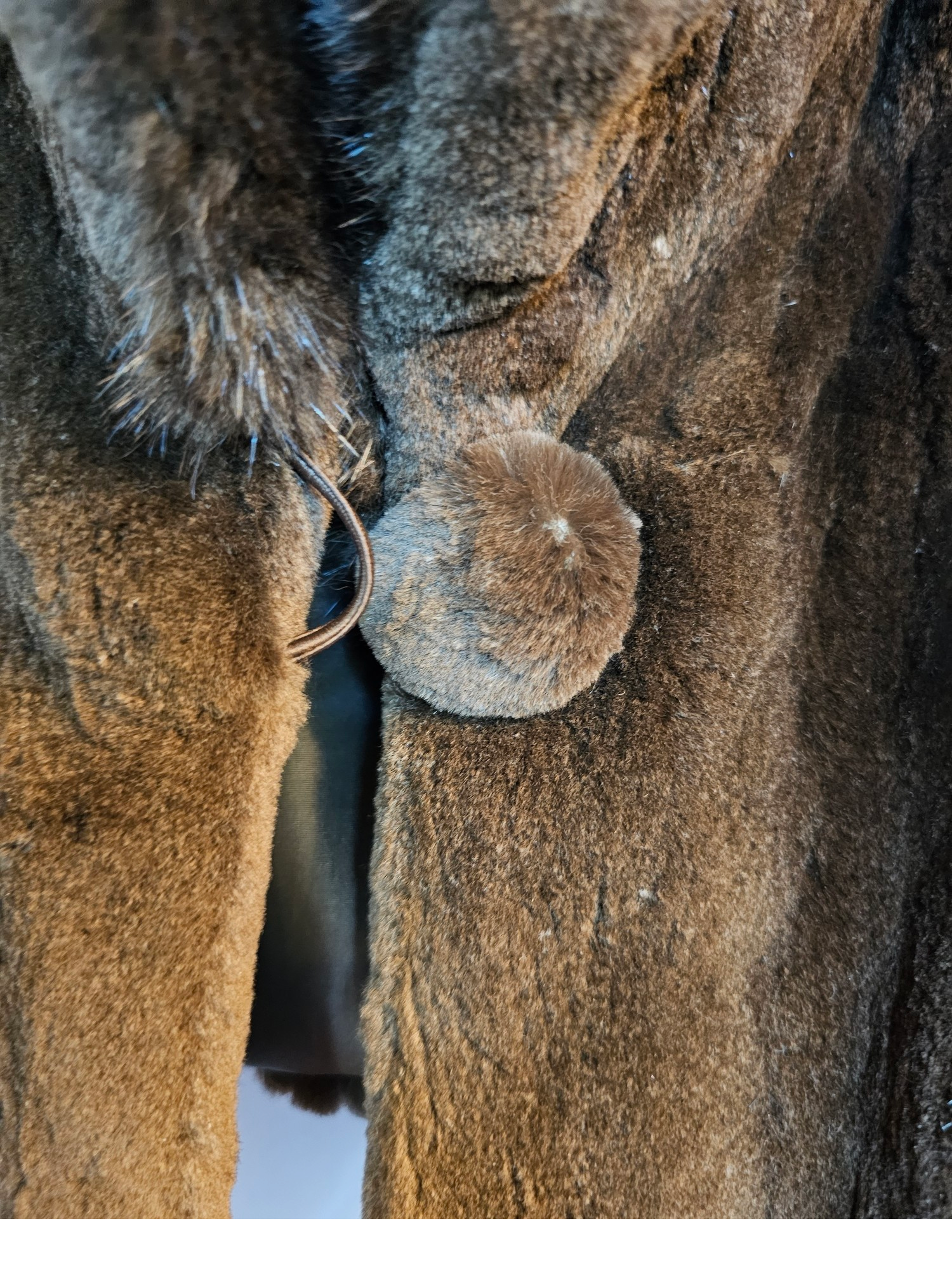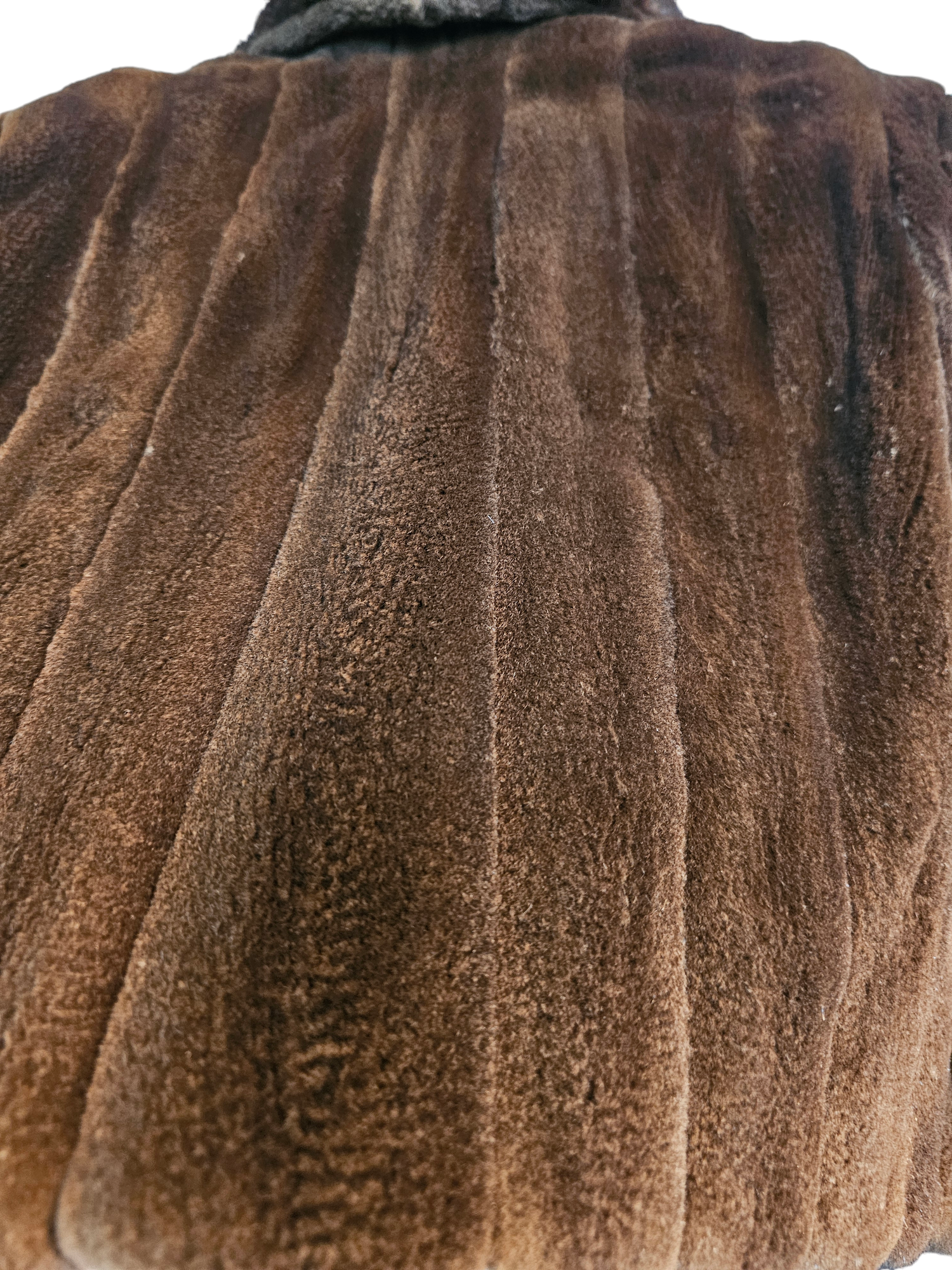 Crafted from luxurious sable fur, this Vintage Cropped Fur Jacket boasts a modern silhouette with a large lapel and exaggerated cuffs. Complete with a large fur-covered button and loop closure, it exudes elegance and warmth. Perfect for adding a touch of sophistication to any outfit.