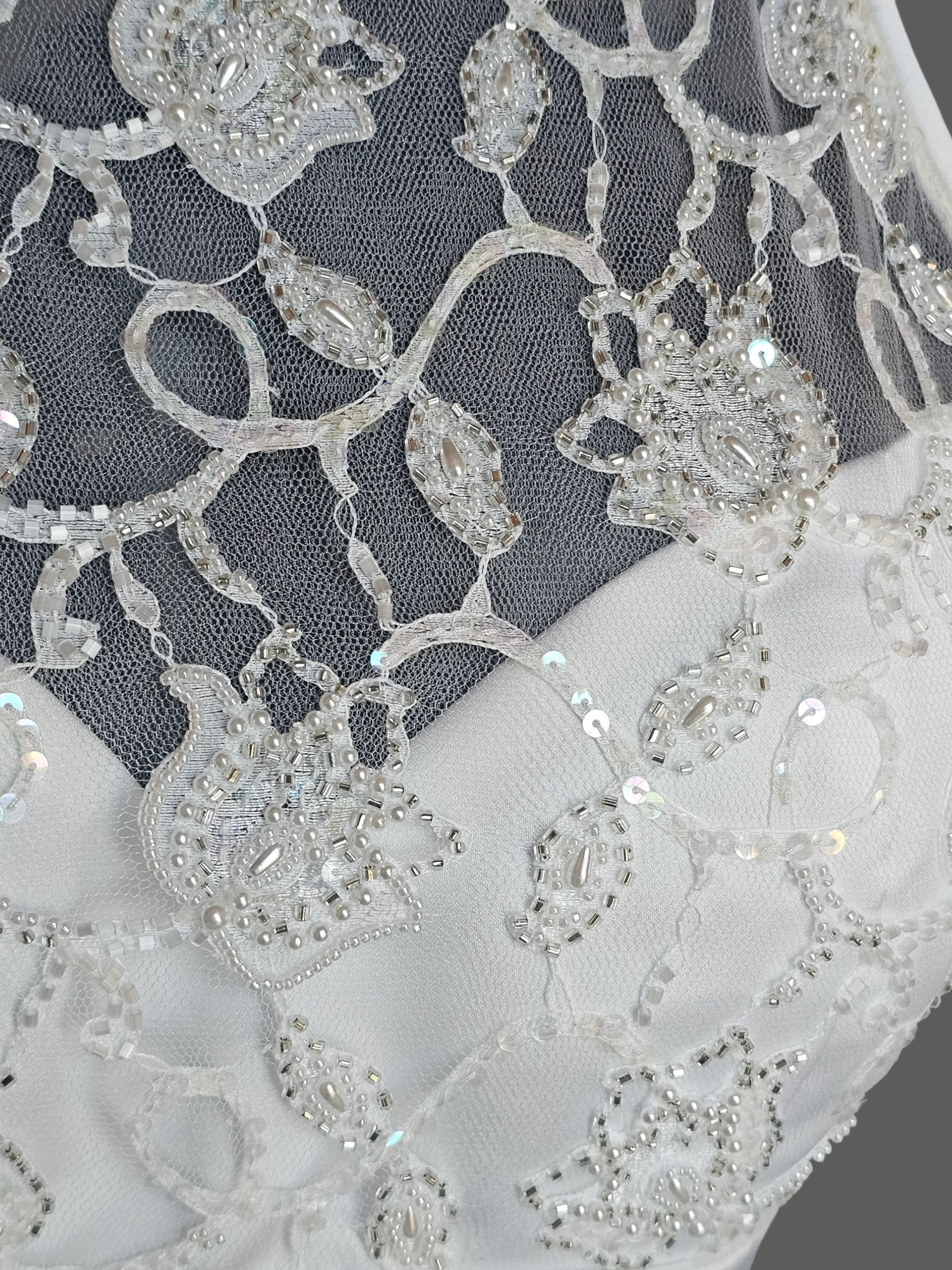 Vintage Halter Illusion Tulip Beaded Hem White Satin Wedding Dress - Venus