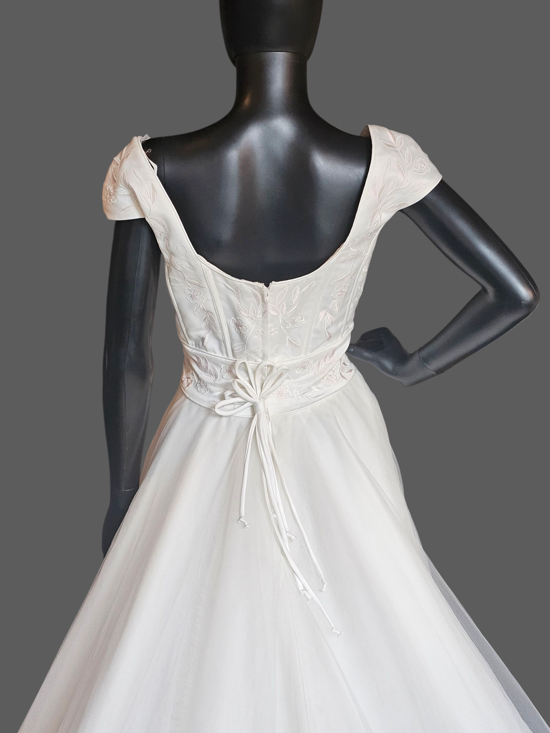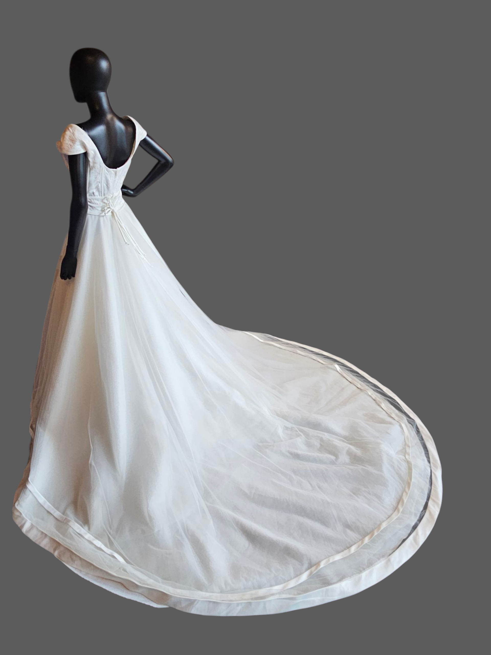 Vintage Ivory/Pink Embroidered Cap Sleeve A-Line Wedding Gown
