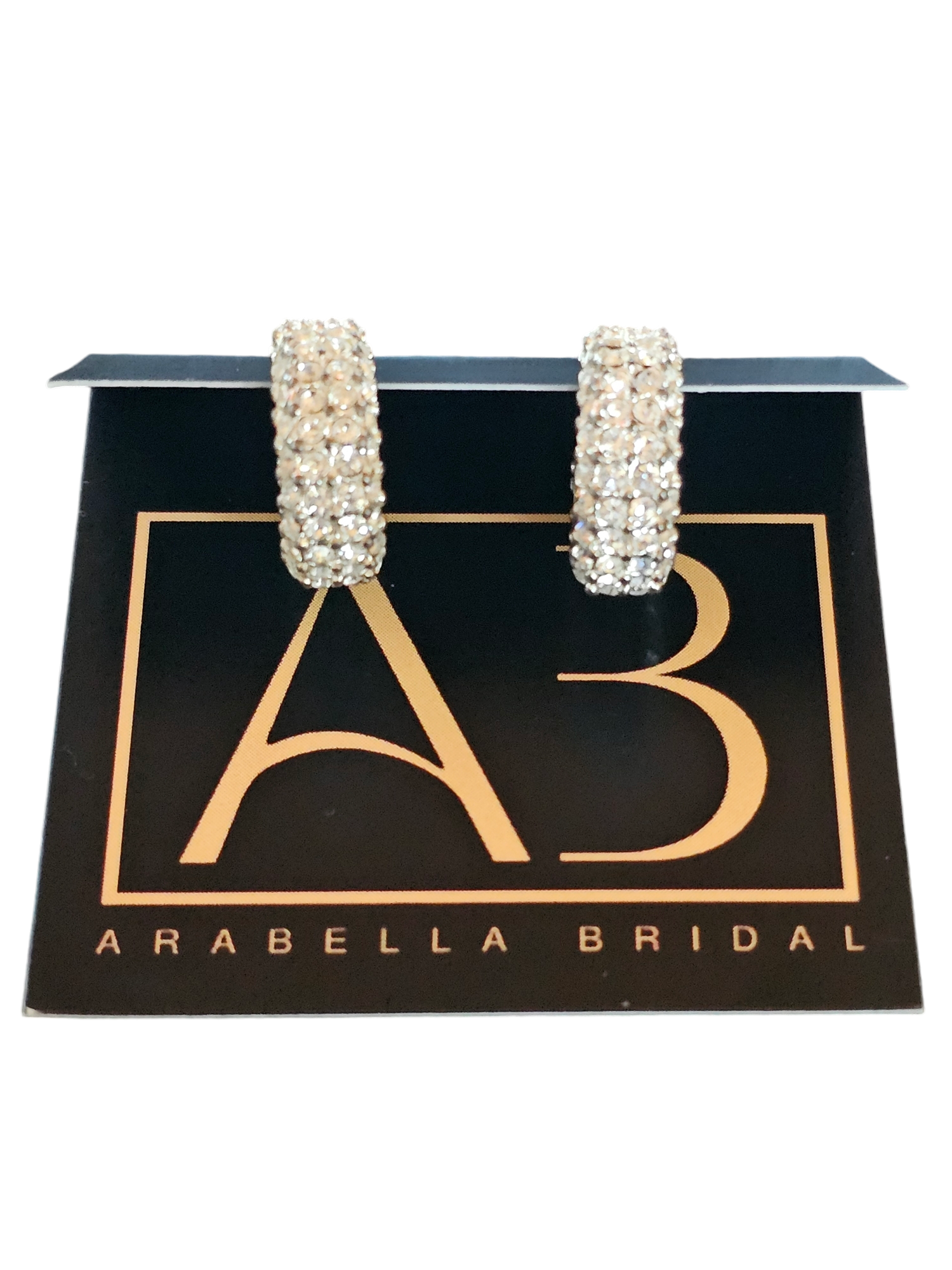 These exquisite Vintage Monet Crystal Hoop Earrings feature a stamped makers mark and are crafted with 4 rows of white crystals set in silver. The clasp closure ensures a secure fit, while the perfect chic shimmer adds an elegant touch to any outfit.