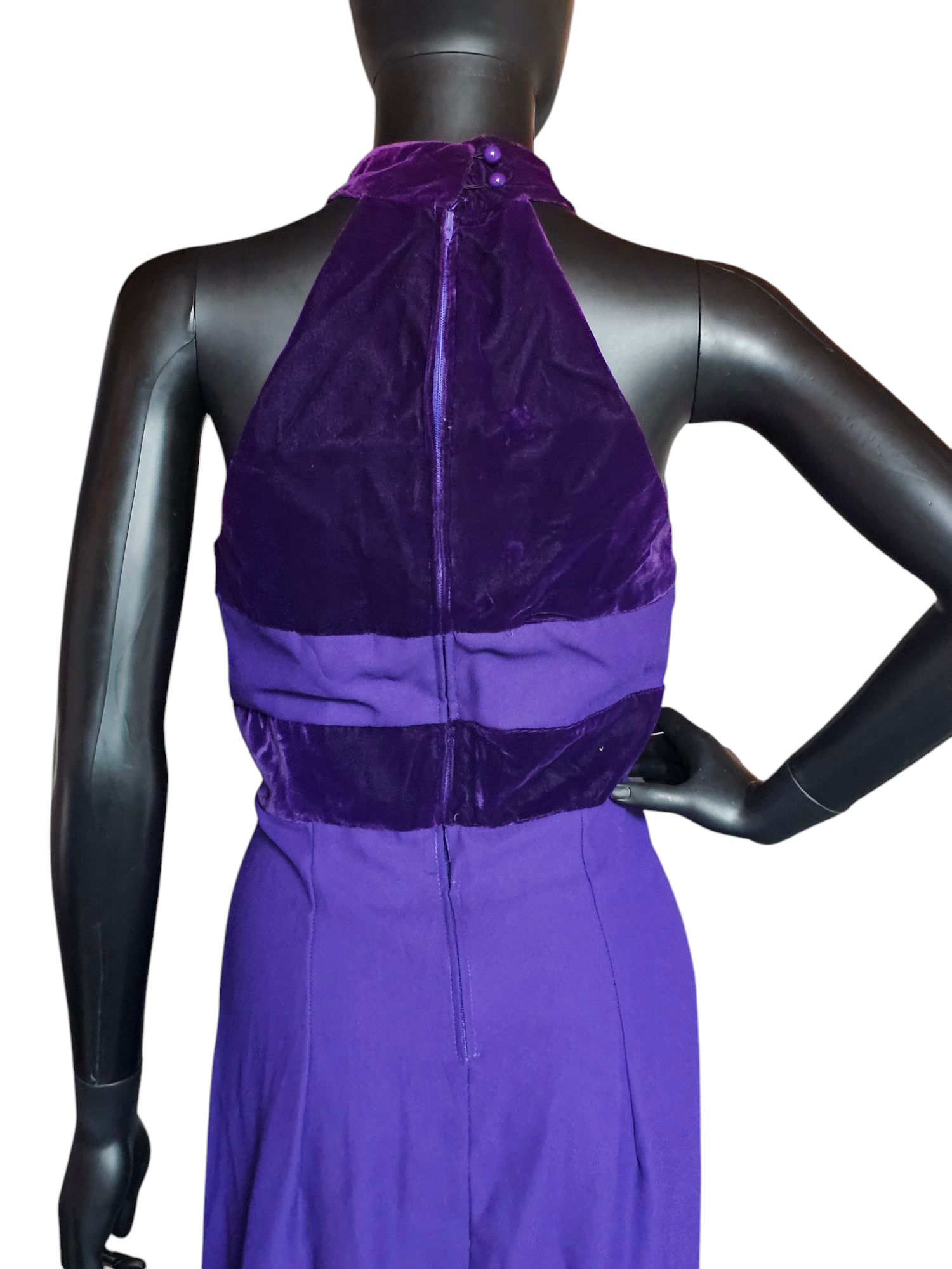 | Vintage Purple Velvet/Crepe Halter Sheath |