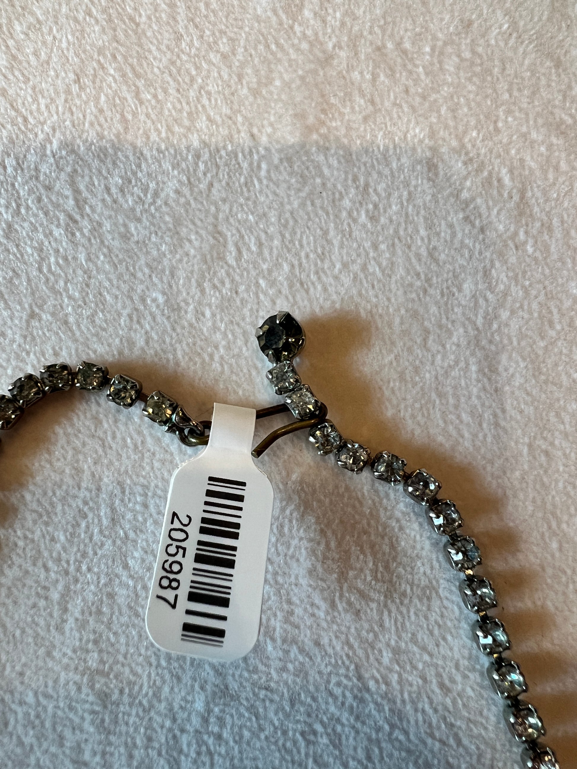 This vintage one-of-a-kind piece is a play on industrial styles with the femininity of sparkling gems. This piece is simple enough for an everyday outfit, yet the intricate detailing can be used to elevate evening attire.