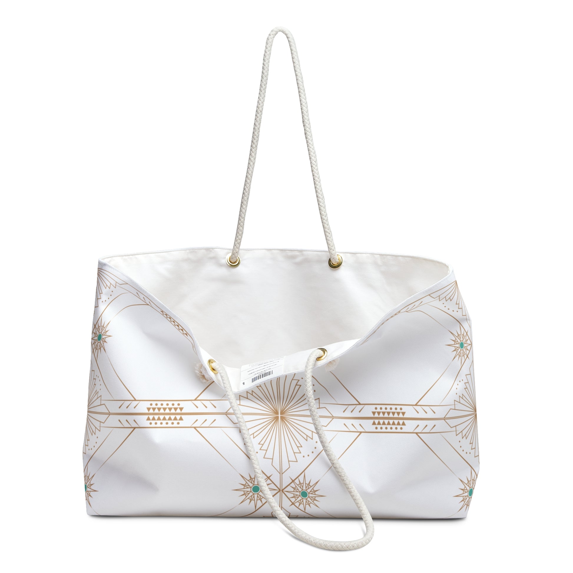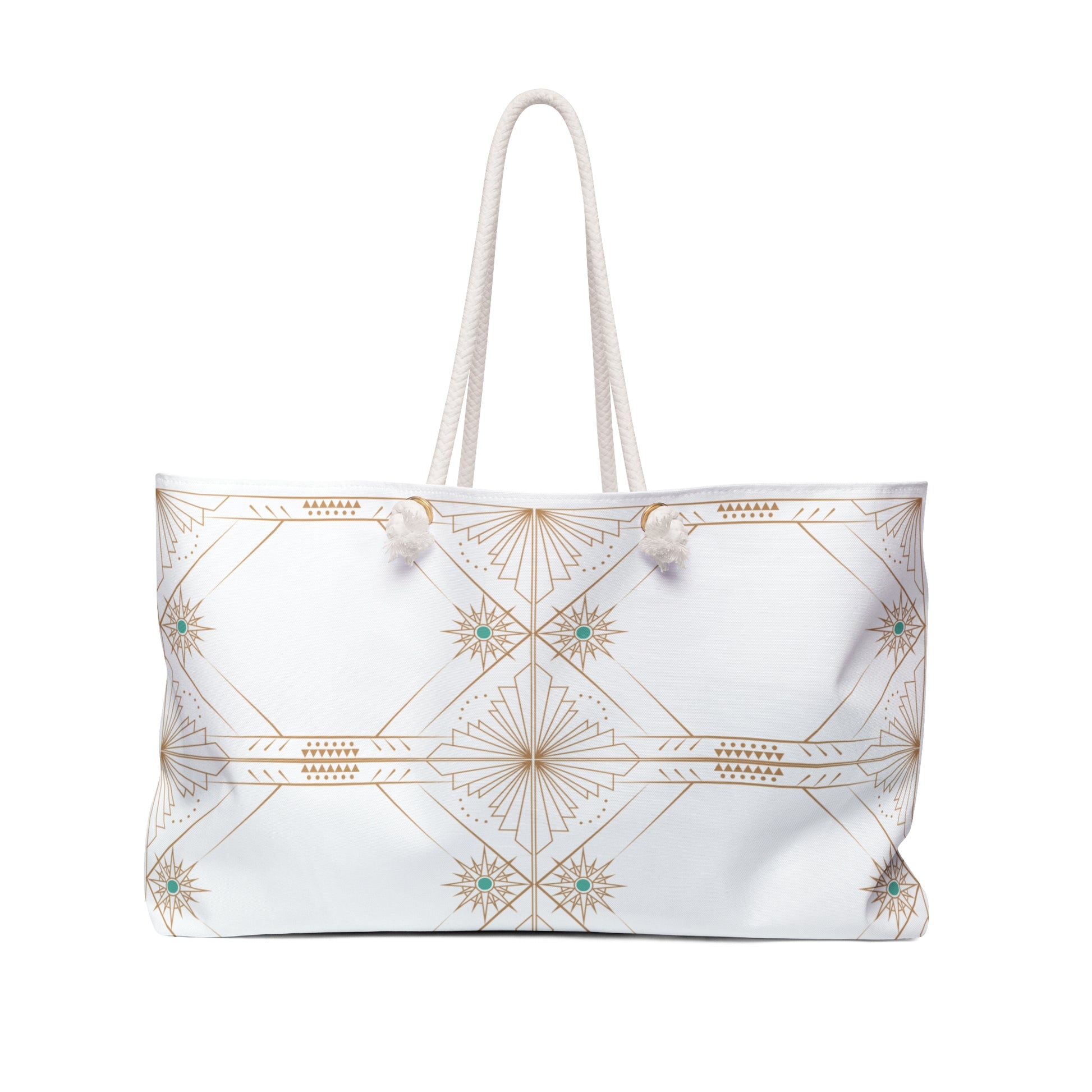 White/Gold Art Deco Chic Weekender Bag for Travel, Boho Tote for Beach Days, Stylish Carry-on for Weekend Getaways, Perfect Gift for Adventurers, [...]