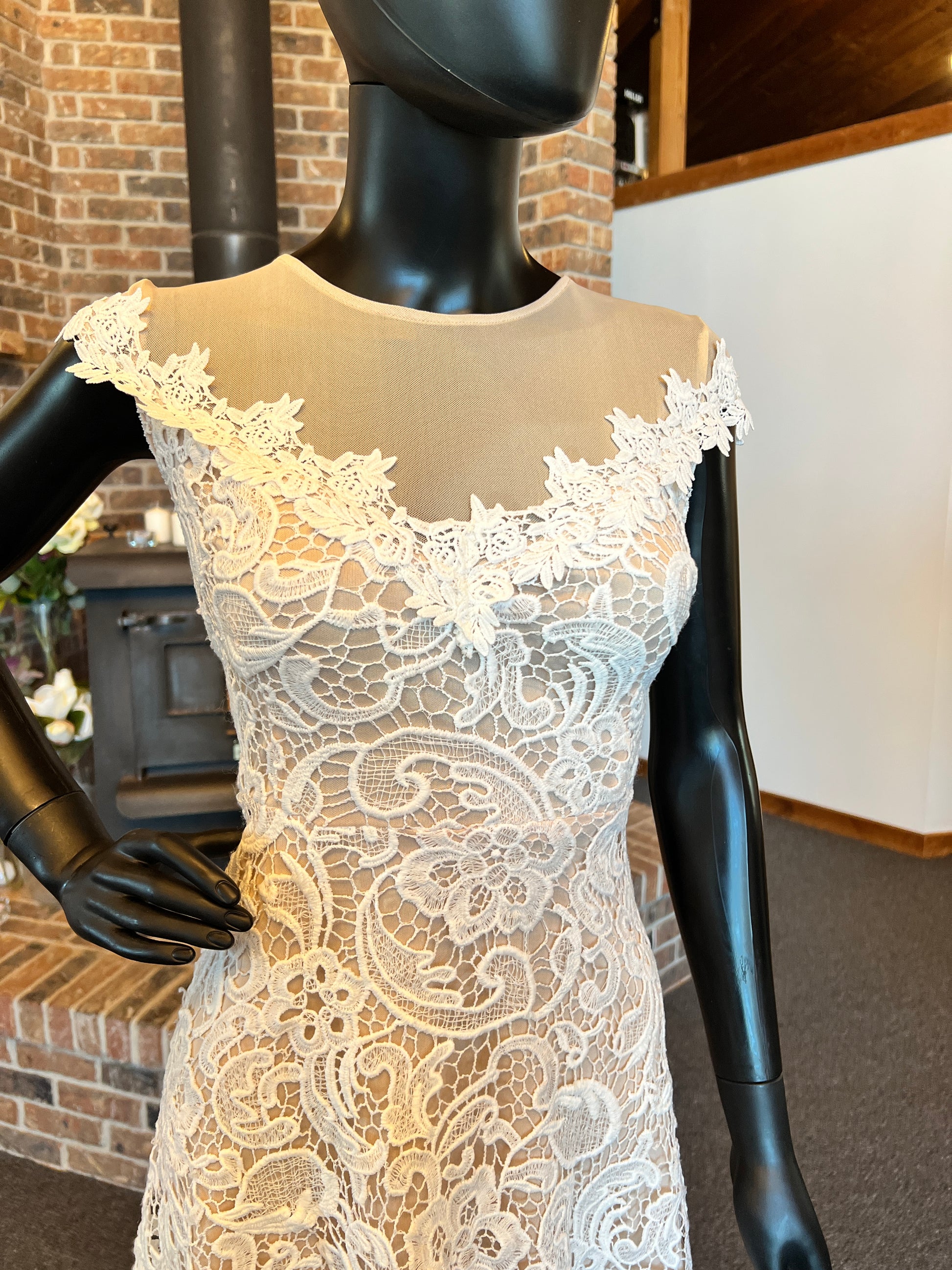 Get ready to turn heads in the White Lace Overlay Nude dress! This fun and flirty cocktail dress features a stunning lace a-line silhouette and an illusion neckline. Perfect for any party or event, this dress is sure to make you feel like the life of the party!