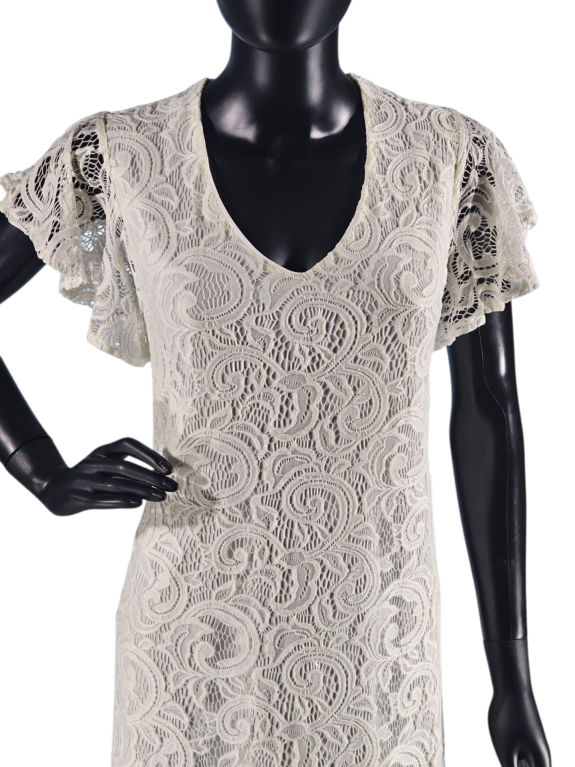 White Lace V-Neck Flutter Sleeve - Dana Buchman