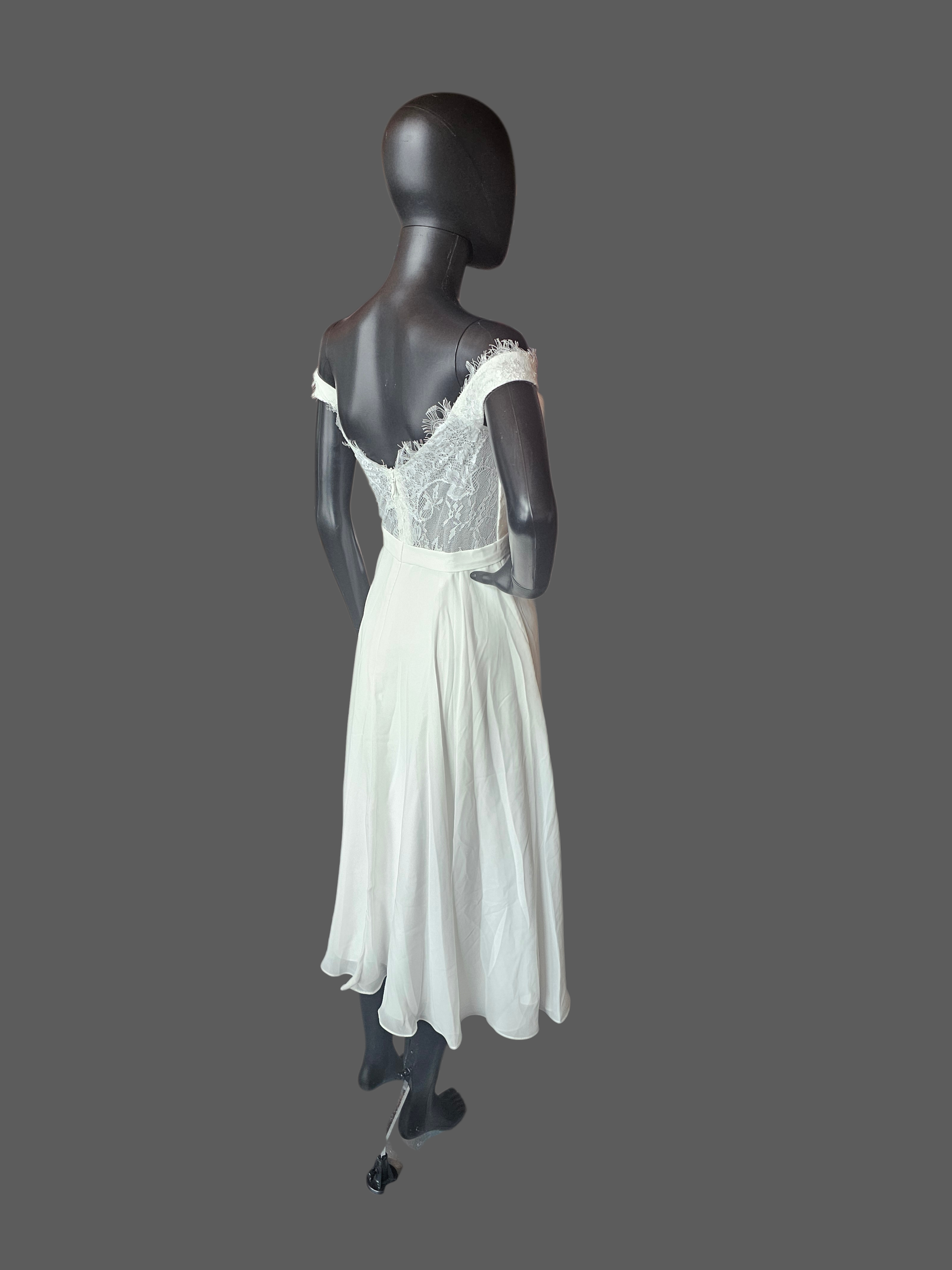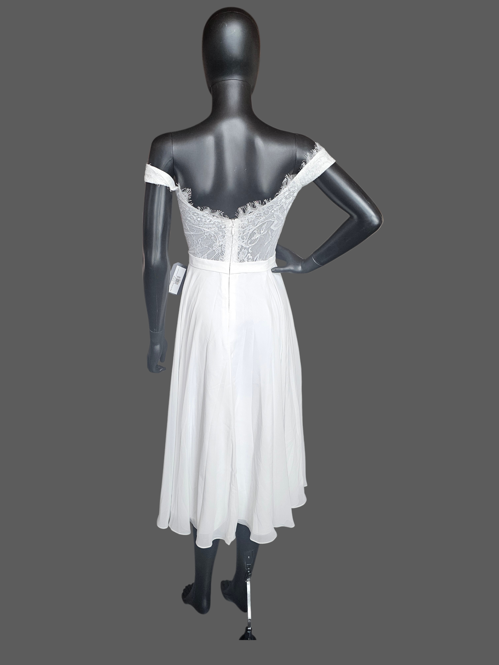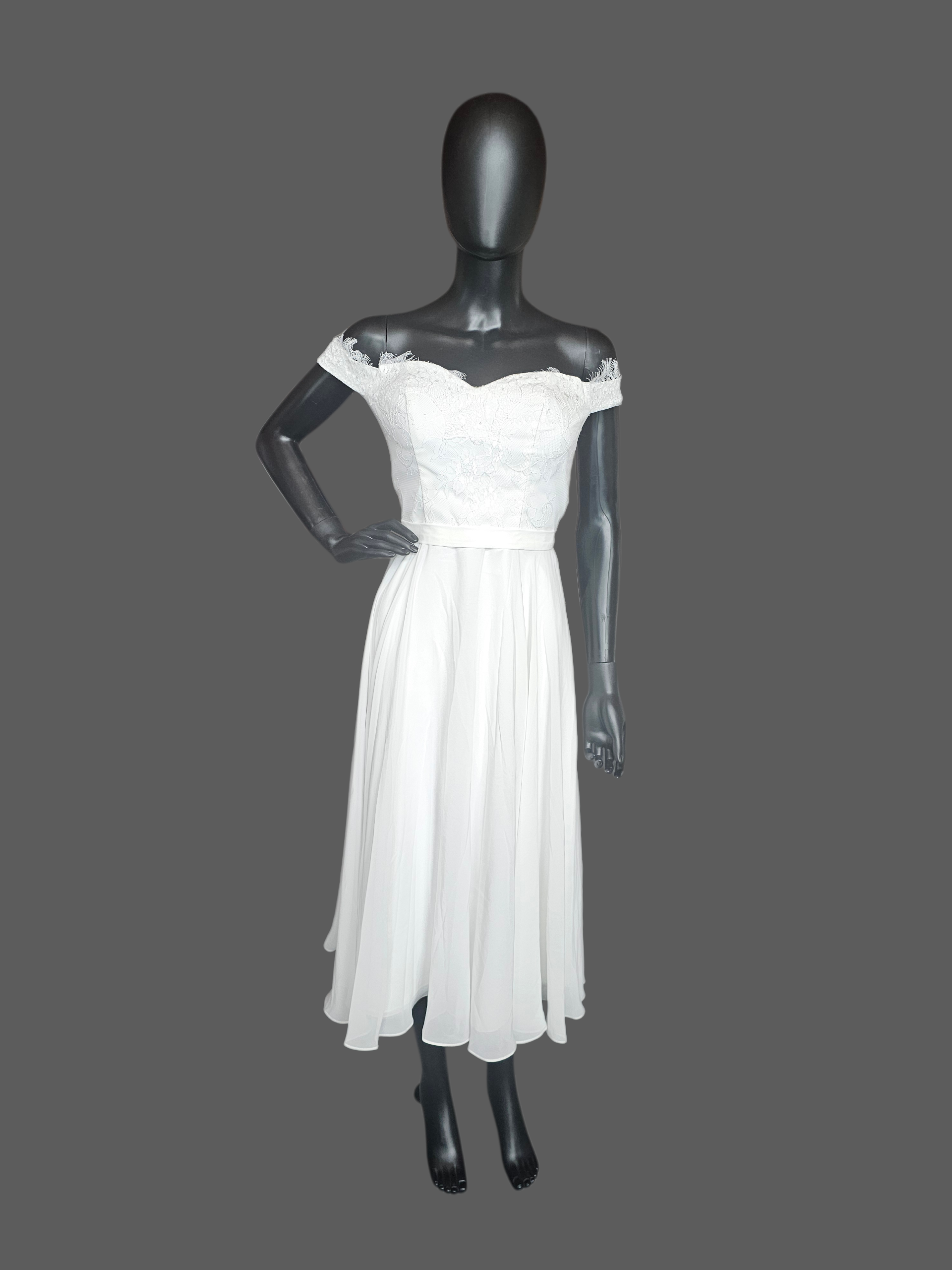 White Off Shoulder Tea Length Courthouse Wedding Dress - JJ's House NWT